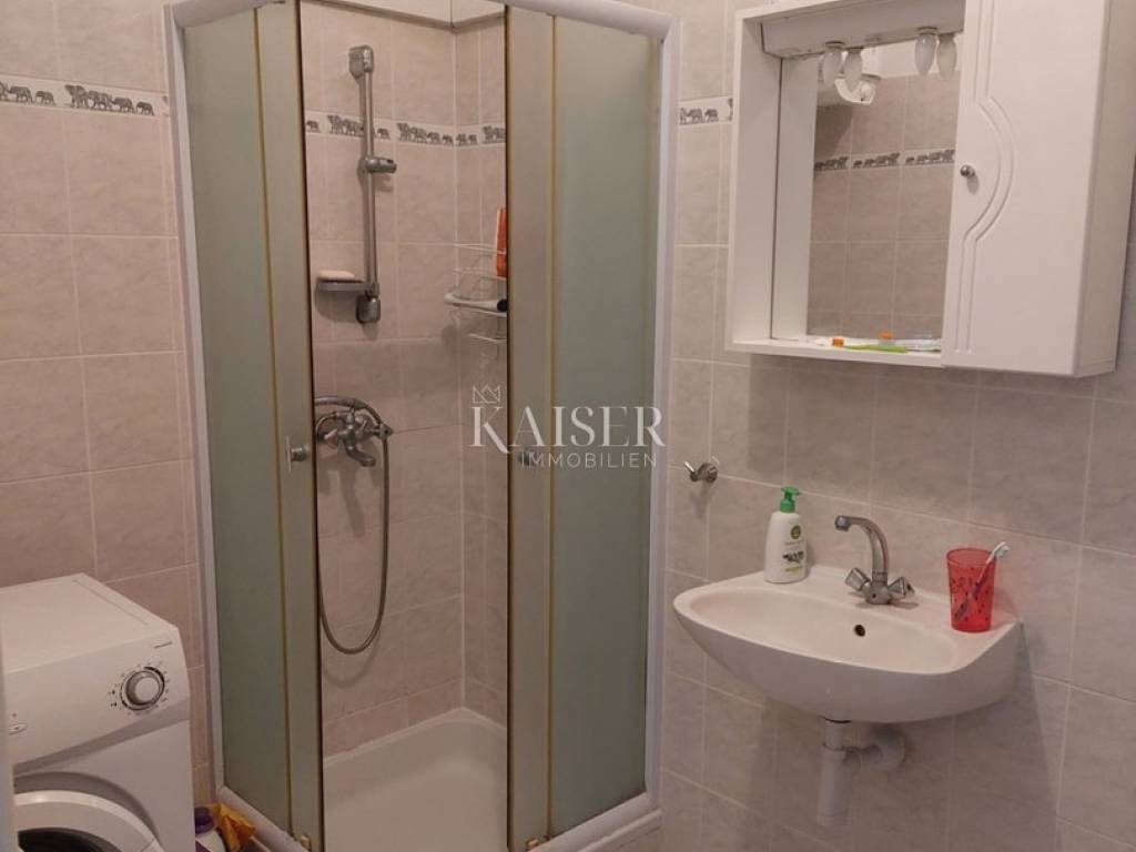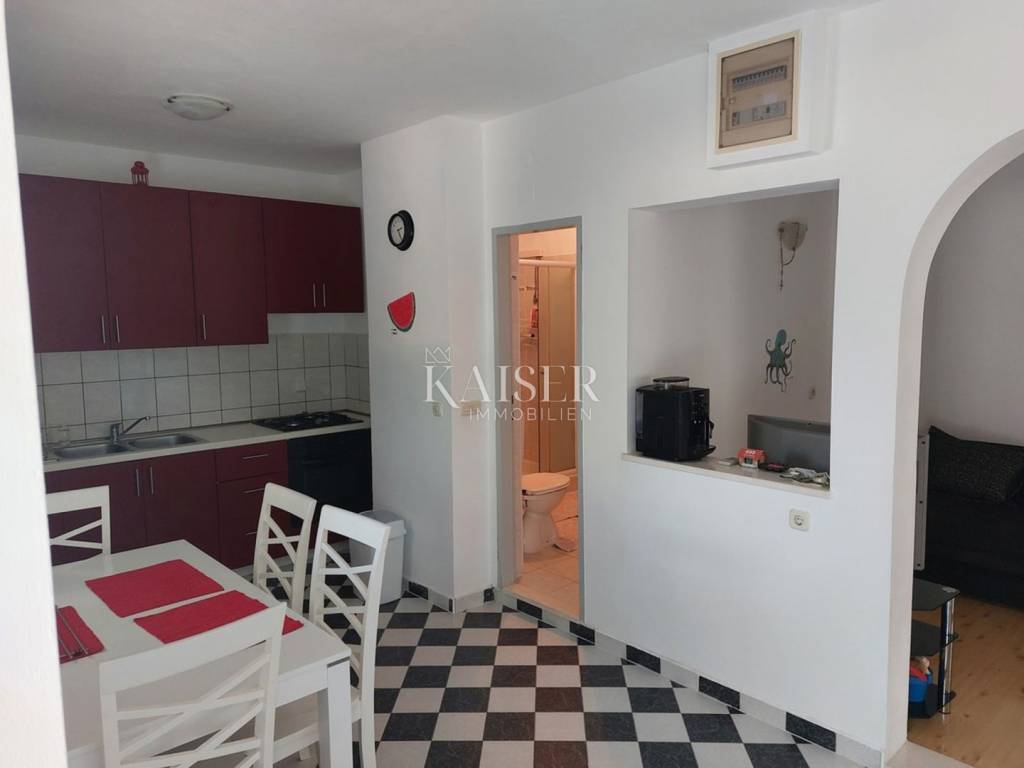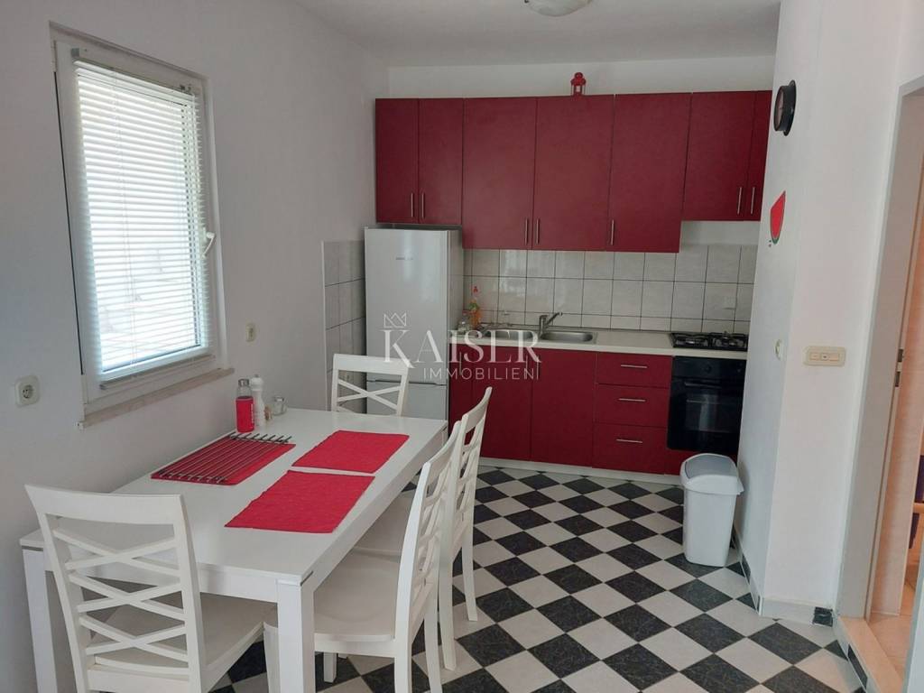 Apartman se nalazi u prizemlju, a njegova sjeverna orijentacija čini ga iznimno ugodnim za boravak tijekom najtoplijih ljetnih mjeseci, pružajući prirodnu svježinu i hladovinu. Nekretnina se prodaje potpuno namještena i opremljena, spremna za trenutačno useljenje ili nastavak iznajmljivanja, bez ikakve potrebe za dodatnim ulaganjem.