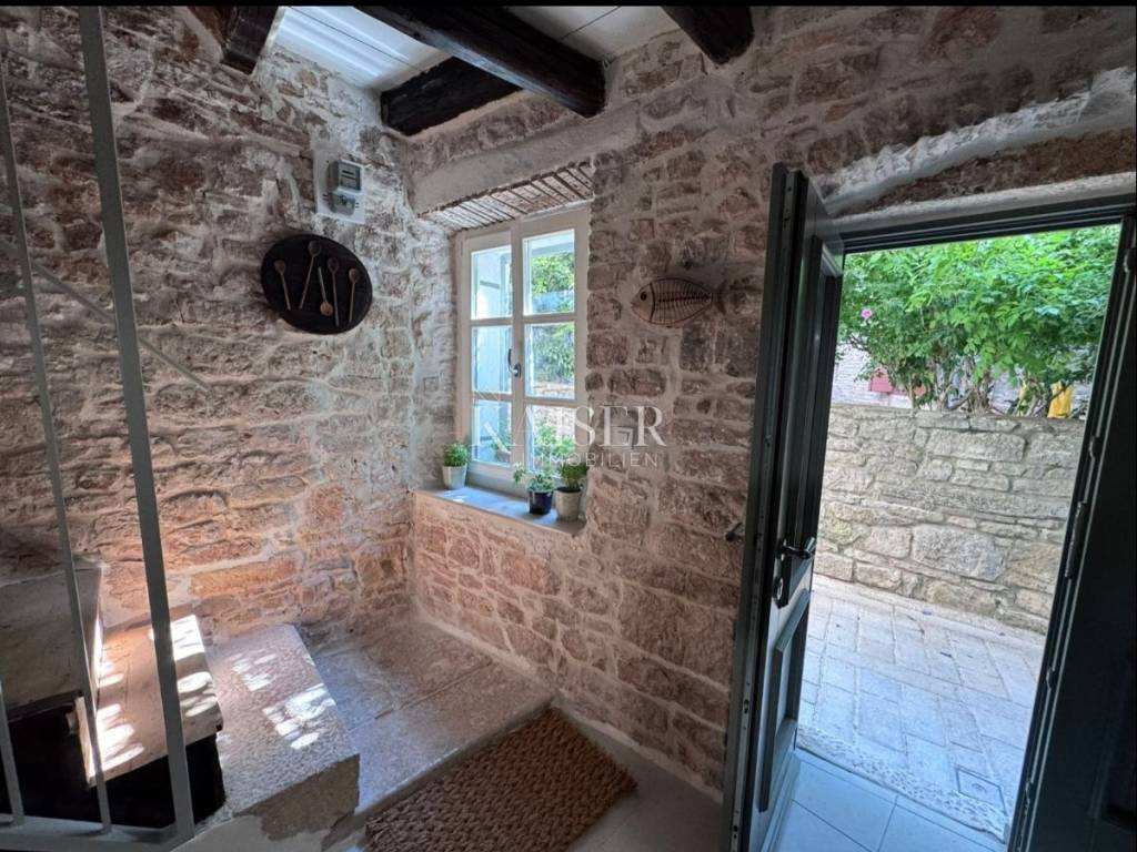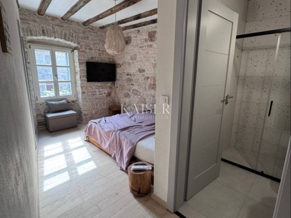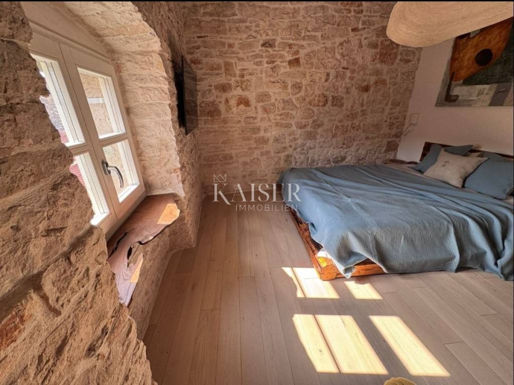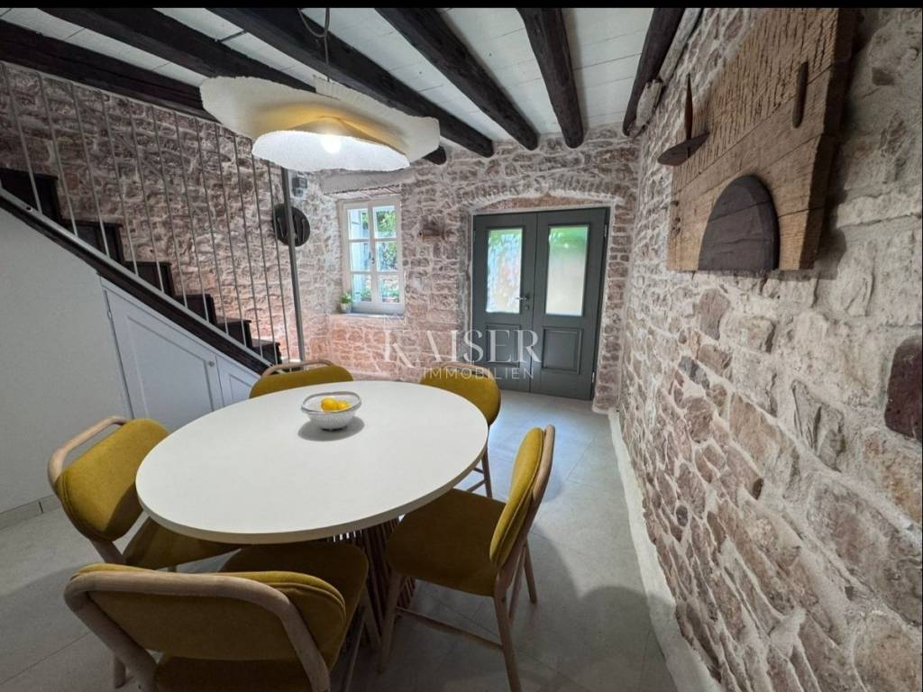 Ova predivna stara autohtona istarska kuća odiše posebnim šarmom, spajajući tradicionalni duh Istre s profinjenim, funkcionalnim dizajnom i namještajem vrhunske kvalitete. Već na prvi pogled očarava svojom autentičnom kamenom fasadom i toplinom koja izvire iz svakog detalja, stvarajući ugođaj istinskog istarskog doma, obnovljenog s puno pažnje i poštovanja prema prošlosti.