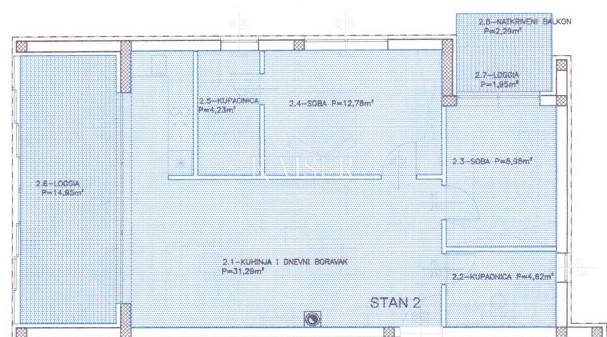 Apartman, oznake Stan 2, nalazi se na prvom katu stambene zgrade. Nudi izdašnu unutarnju stambenu površinu od 66,23 m², uz dodatak čak tri vanjska prostora – dvije lođe i balkon, što ga čini izuzetno prozračnim i ugodnim za boravak.