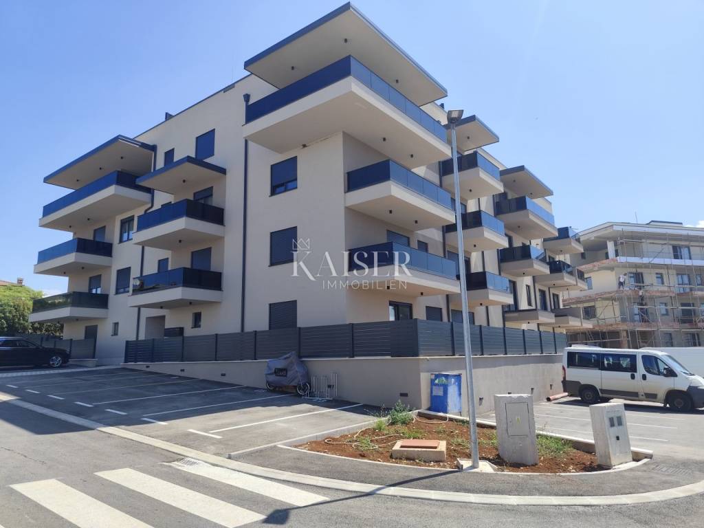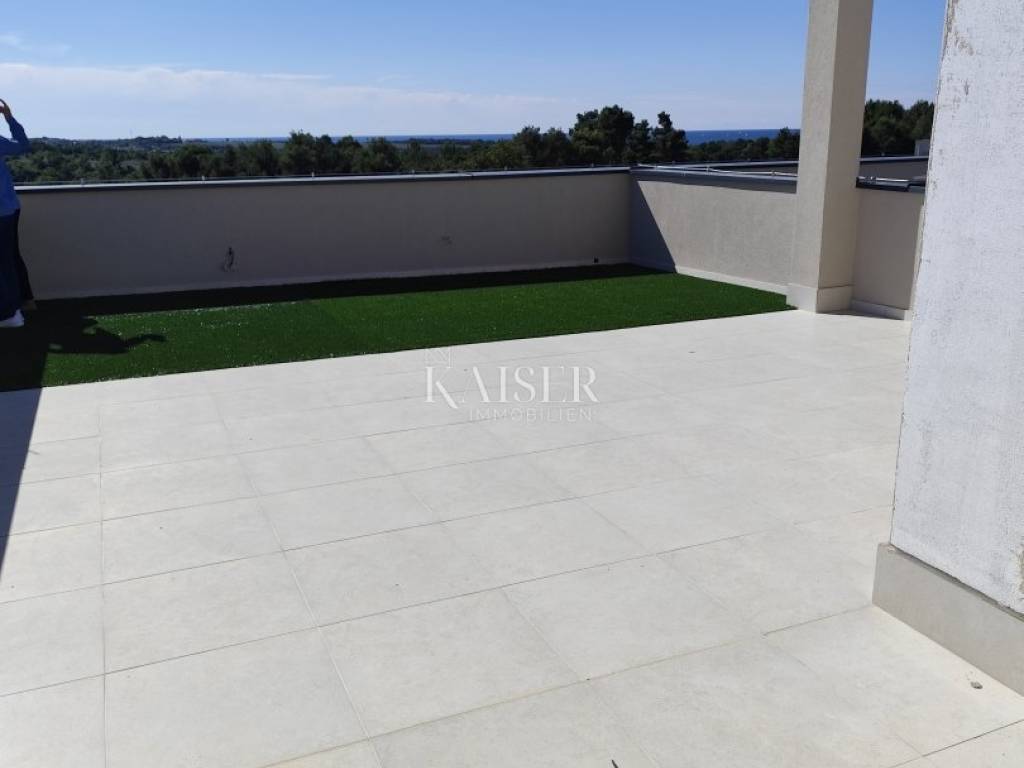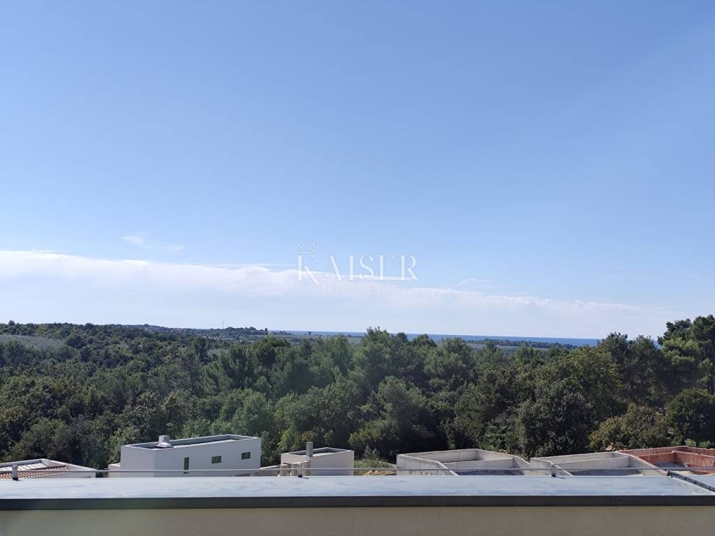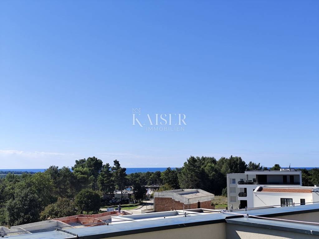 Kaiser Immobilien prodaje moderan stan na 3. katu u novogradnji sa krovnom terasom i pogledom na more, 500 m od mora i centra mjesta. Ovaj prekrasan stan smješten je na mirnoj lokaciji udaljen 5 km od centra grada Poreča i 7 km od centra grada Novigrada.