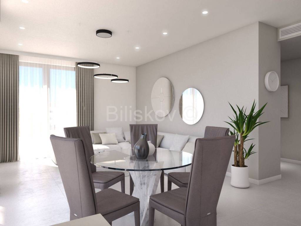Na prodaju je stan u sklopu ekskluzivnog resorta u izgradnji, smještenog u mirnom dijelu Kaštela. Ovaj projekt poluzatvorenog rezidencijalnog naselja pruža idealan balans između privatnosti, udobnosti i brzog pristupa urbanim sadržajima. Unutar resorta planirana je vlastita cesta koja vodi direktno na brzu cestu, što budućim vlasnicima omogućuje jednostavan i brz odlazak i dolazak do stambenog objekta te praktičan pristup okolnim gradovima i ključnim prometnicama.