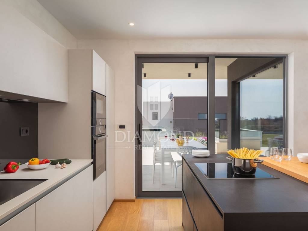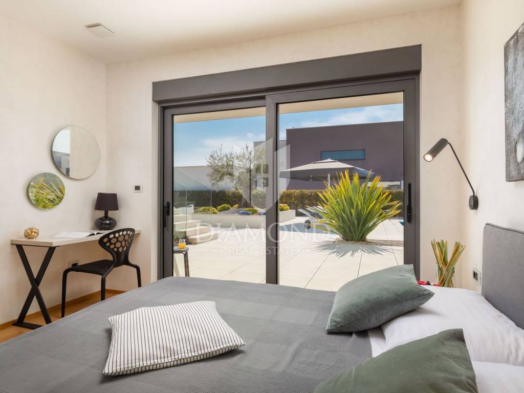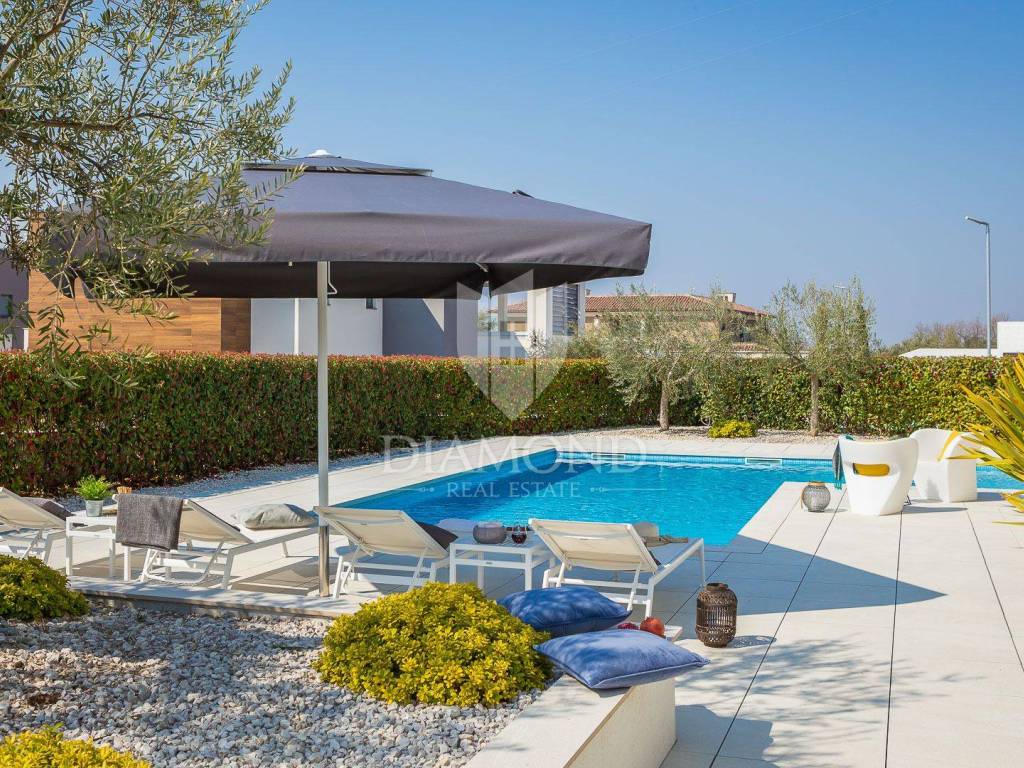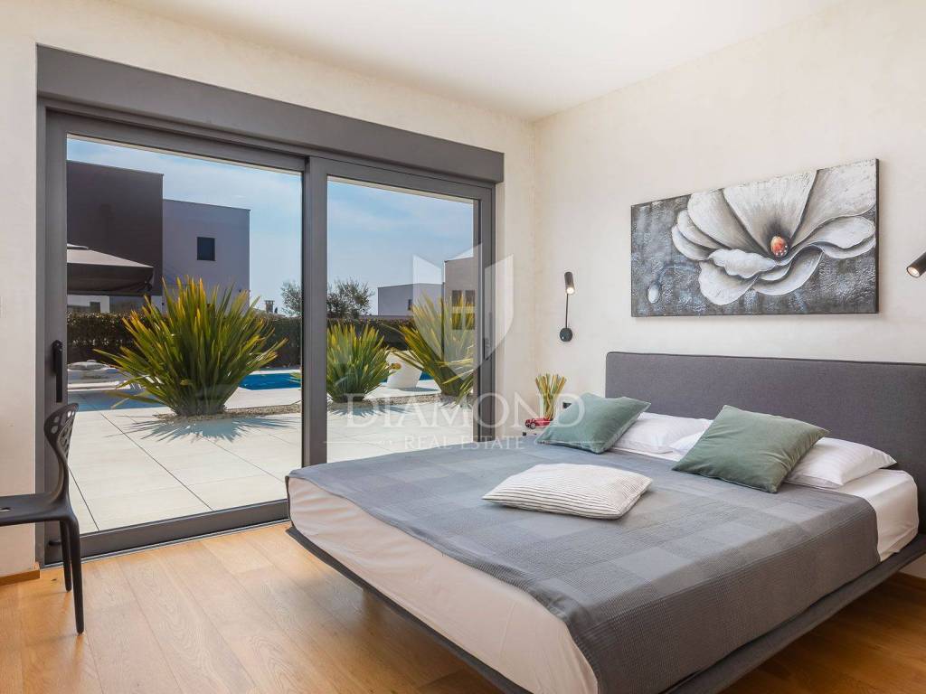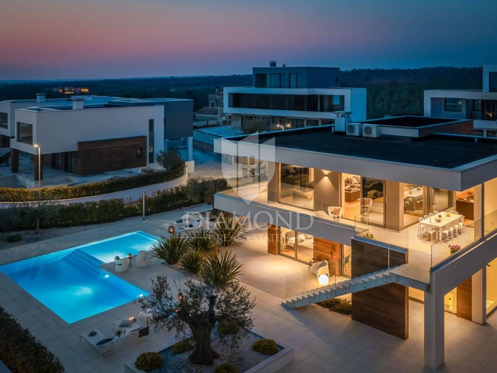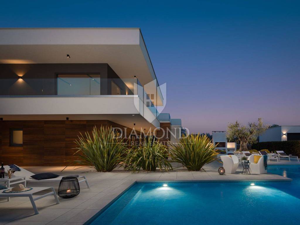 Jedna od prvo dovršenih kuća u naselju je velebna VILA PENDOLINO koja već na prvi dojam očarava modernim linijama, velikim terasama te stoljetnim maslinama koje je okružuju. Sama kuća prostire se na 3 prostrane etaže. Podrumski dio koji je predviđen za sadržaje kao što su biljar, stolni tenis, teretana, stolni nogomet te dodatna soba za mlade ili osoblje kuće. Na prizemlju se nalaze 3 sobe, svaka sa vlastitom kupaonicom te mini wellness prostorija sa saunom i tušem. Iz svake prostorije se izlazi na kućni bazen te prostranu okućnicu. Na prvome katu smjestio se dnevni boravak sa kuhinjom sa ostavom, blagovaonom te vlasnička soba sa kupaonicom i izlazom na terasu. Iz dnevnoga boravka izlazi se na terasu veličine cca 55m2 koja sa koje se prostire pogled na naselje, zeleno okruženje te more i Brijune.