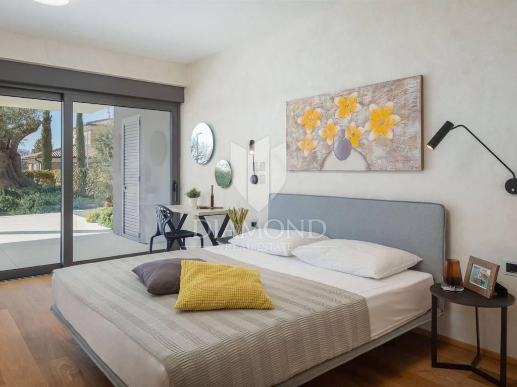 Na samom ulazu u naselje smjestila se velebna VILA BUŽA. Kao druga kuća u naselju ima ulogu da predstavlja naselje i impresionira sve prolaznike. Na prvi dojam jednostavne moderne linije, stoljetna maslina i bazen koji dominira okolišem. Gledano sa boka njezino najljepše pročelje, ono južno otkriva o kakvoj se ljepotici radi. Sama kuća prostire se na 3 etaže. Podrumski dio koji je predviđen za sadržaje i zabavu kao što su biljar, stolni tenis, teretana, stolni nogomet te dodatna soba sa kupatilom za mlade ili osoblje kuće. Na prizemlju se nalaze 4 sobe, svaka sa vlastitom kupaonicom te prostorija sa saunom i tušem sa direktnom komunikacijom prema konobi i dvorištu. Iz svake prostorije se izlazi na bazen te prostranu okućnicu. Na prvome katu smjestio se dnevni boravak, kuhinja sa ostavom, blagovaonica te vlasnička(master) soba sa kupaonicom, radna soba ili dječja soba po potrebi, dodatni wc i izlazom na terasu. Iz dnevnoga boravka izlazi se na terasu veličine cca 50m2 koja sa koje se prostire pogled na more i Brijune.