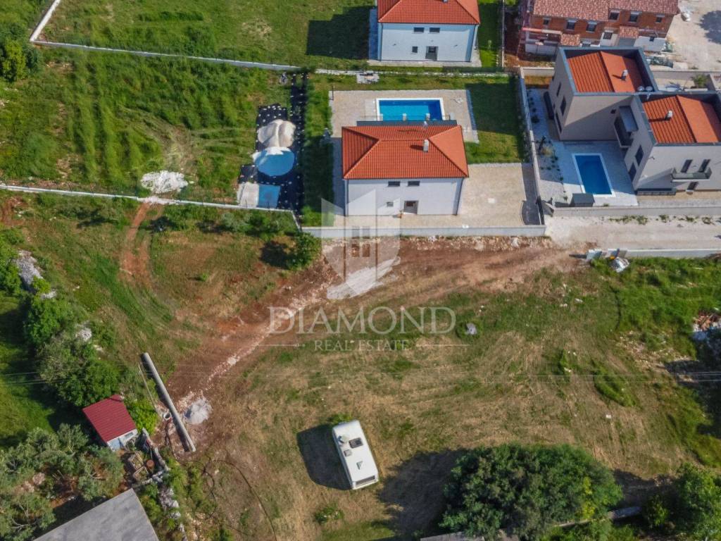 Građevinski dio se sastoji od 1623m2 uz koji se veže još jedan od 412m2. Građevinski dio je pravilnog oblika te omogućuje dobro pozicioniranje kuća a poljoprivredni dio se može pripojiti jednoj od kuća kao predivan vrt također s pogledom na more.