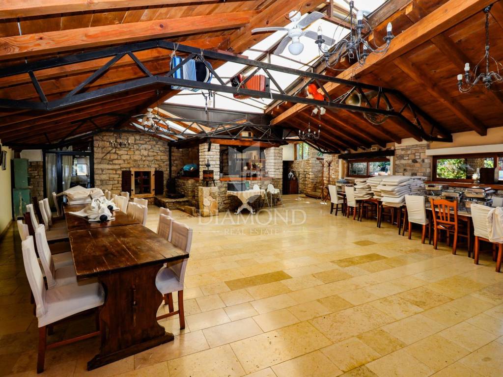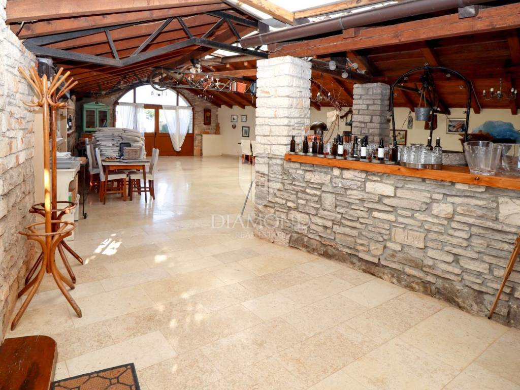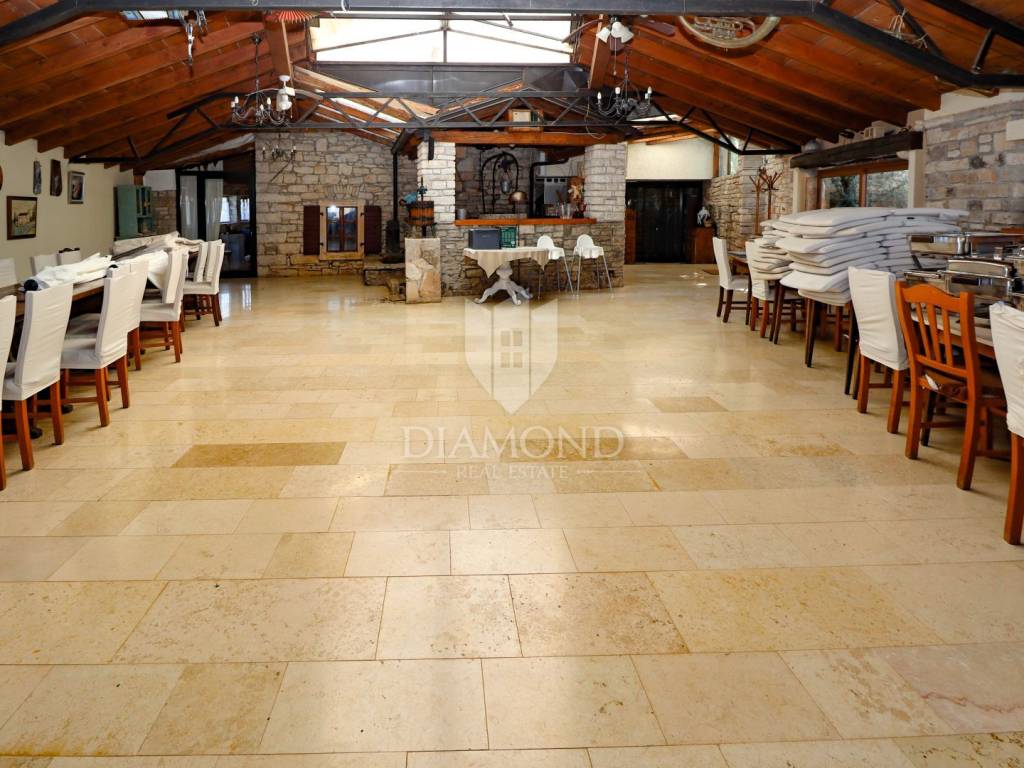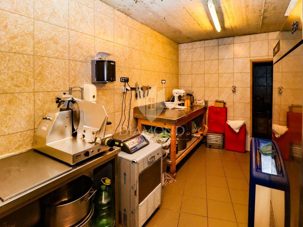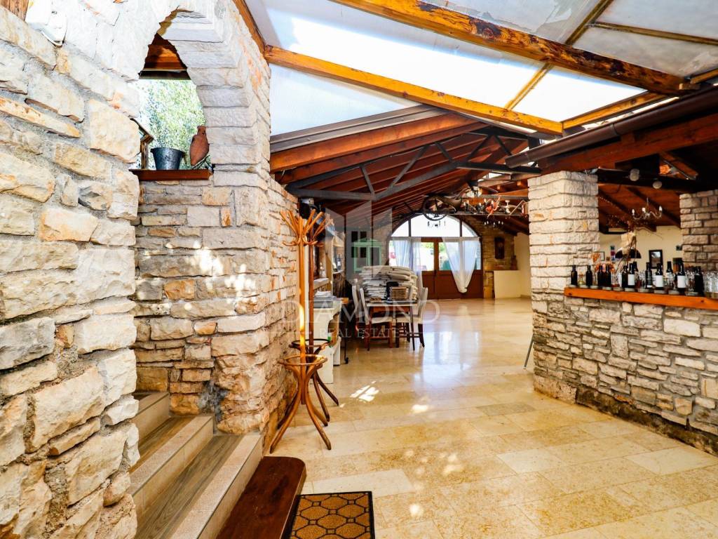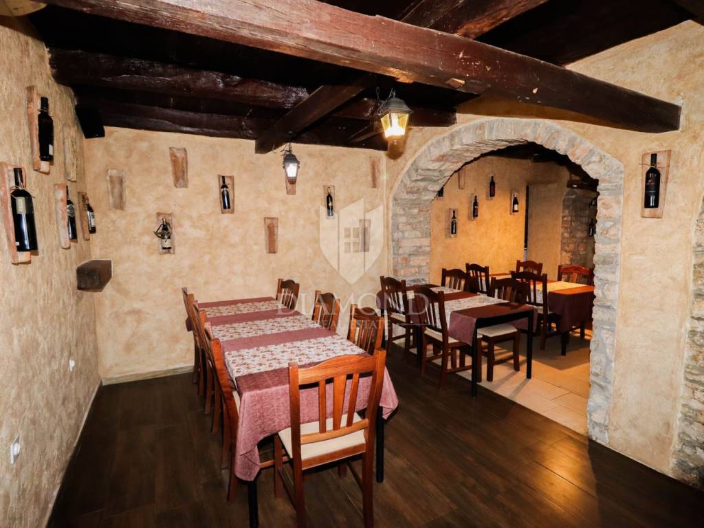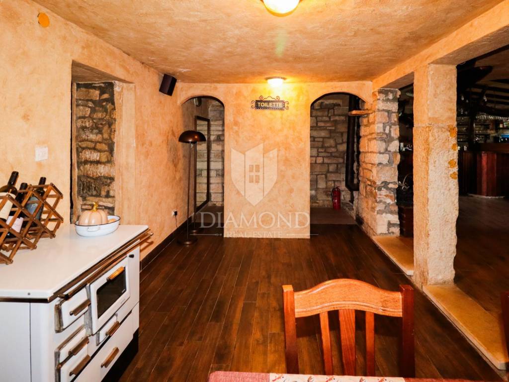 Konoba se sastoji od kuhinje sa skladištem i stražnjim ulazom za dostavu, šanka sa predprostorom, toaletom, unutarnje sale sa kaminom, prostrane unutarnje terase sa šankom, predivne vanjske terase uz koju se nalazi bazen sa sunčalištem. Sama lokacija nekretnine je na mirnom mjestu okružena sa prirodom.
