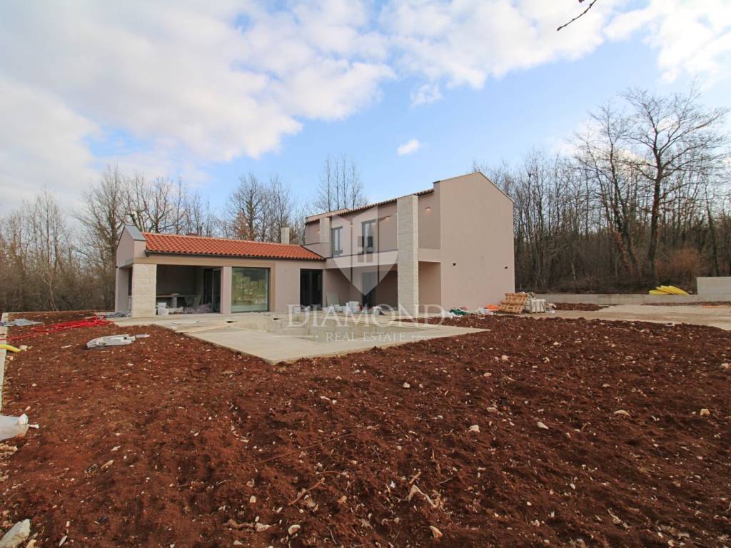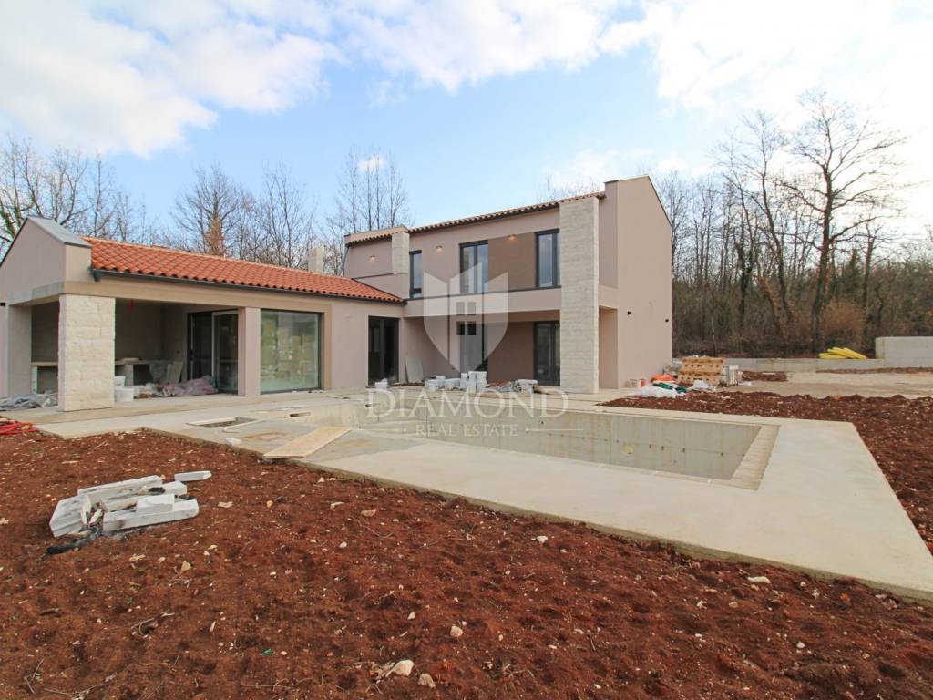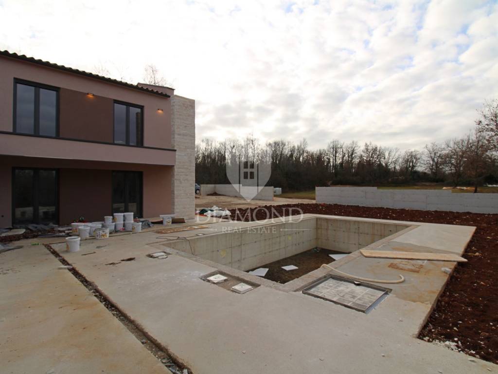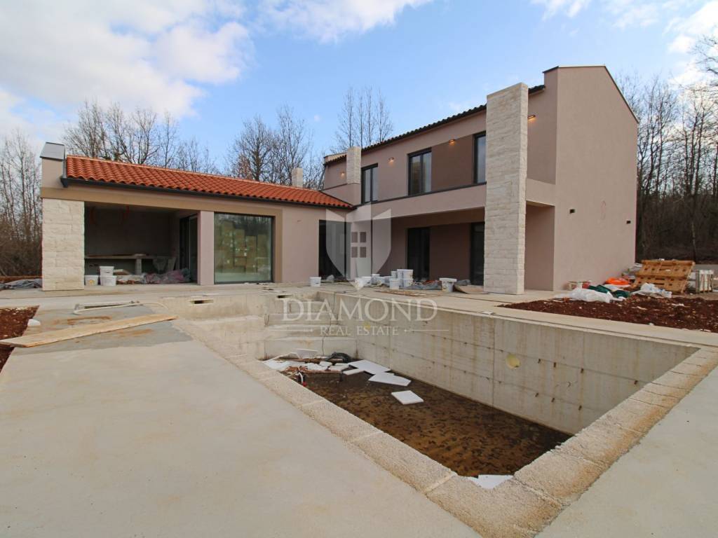 Grijani bazen površine 32 m² okružen je sunčalištem i ljetnom kuhinjom, idealnim za opuštanje i uživanje tijekom toplih ljetnih dana. Cijela kuća je opremljena modernim interijerom, podnim grijanjem i klima uređajima u svim prostorijama.