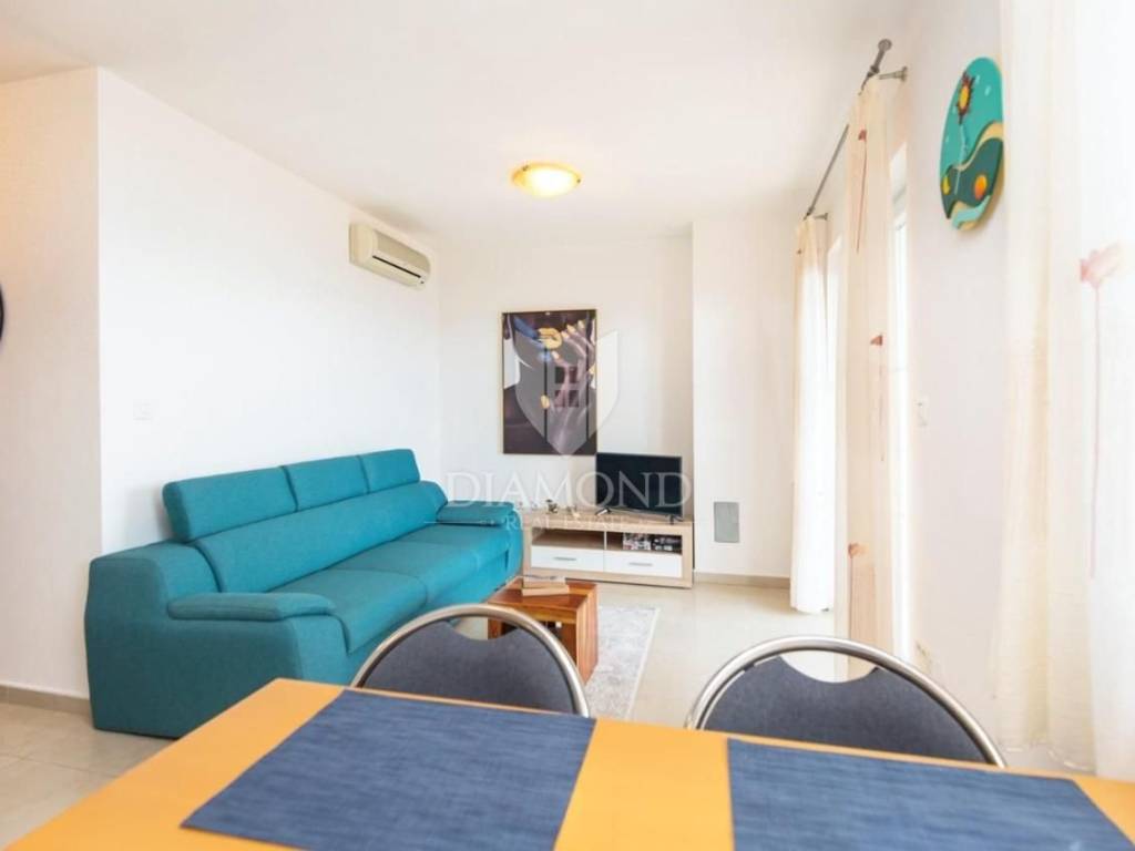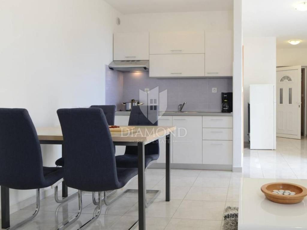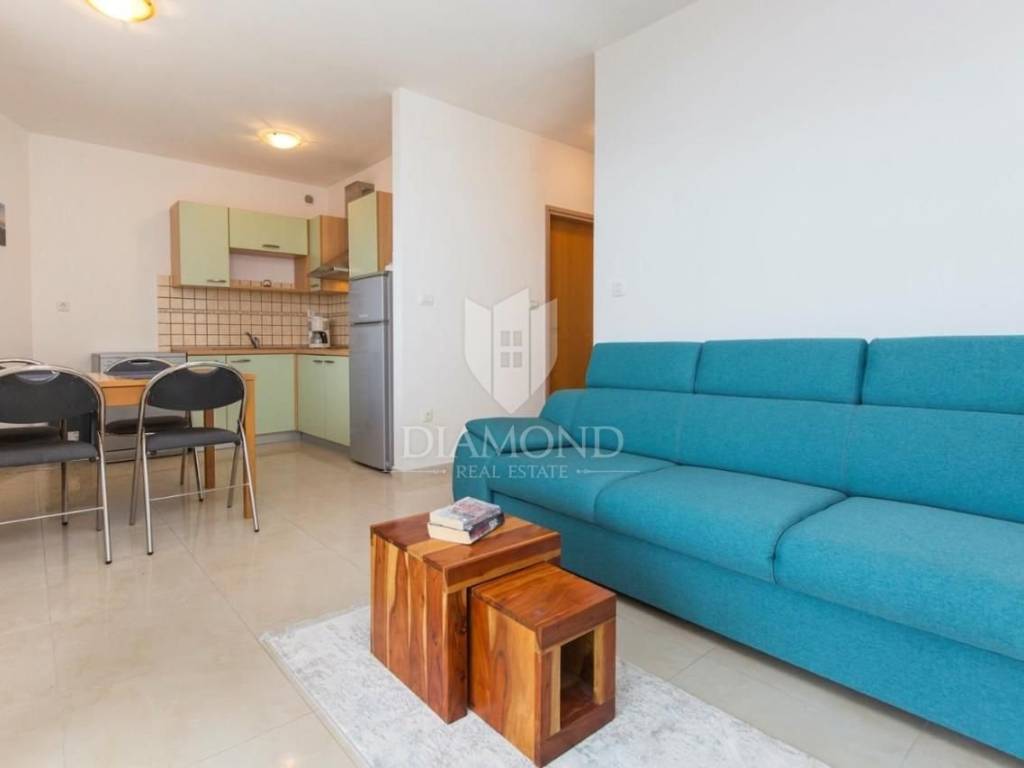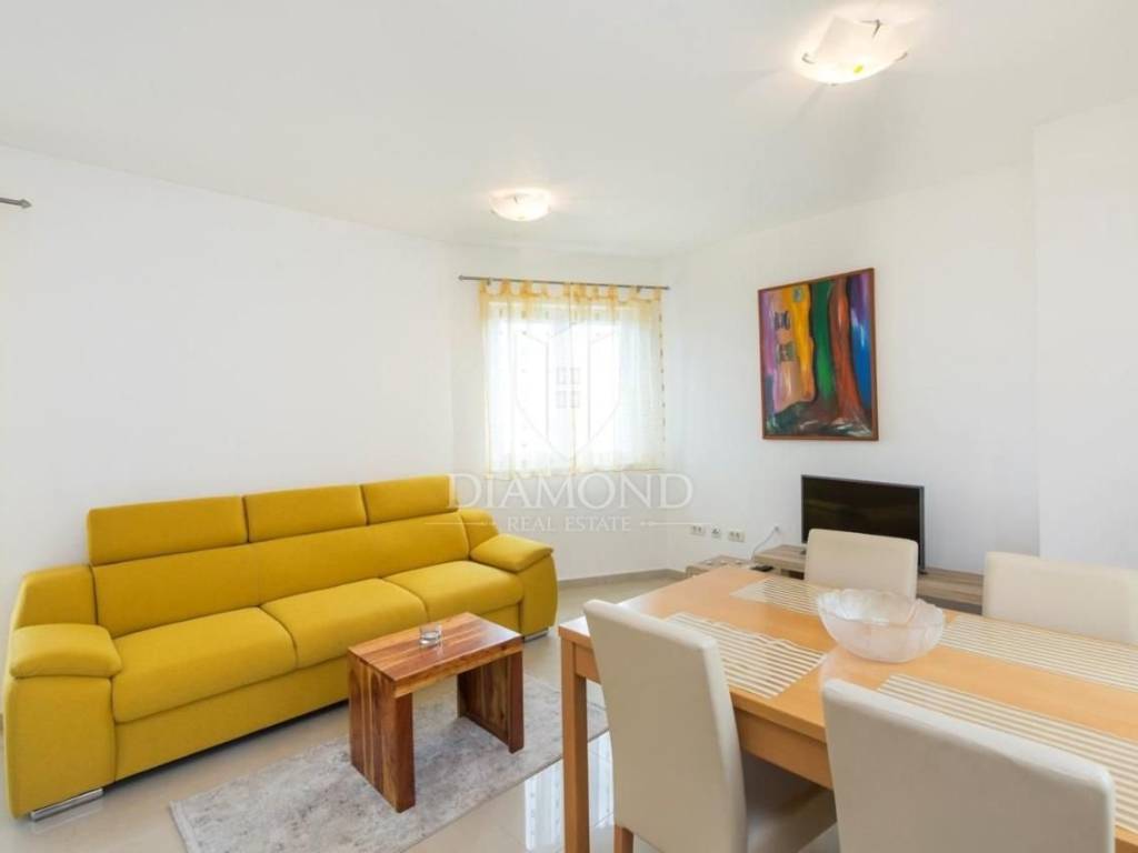 Stan od 50 m2 sastoji se od dvije spavaće sobe, dnevnog boravka spojenog s kuhinjom i blagavaonom s izalzom na terasu te kupaone.