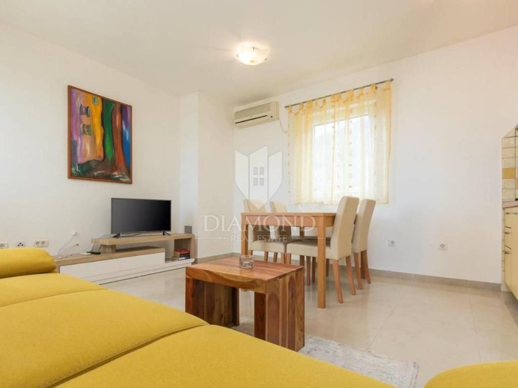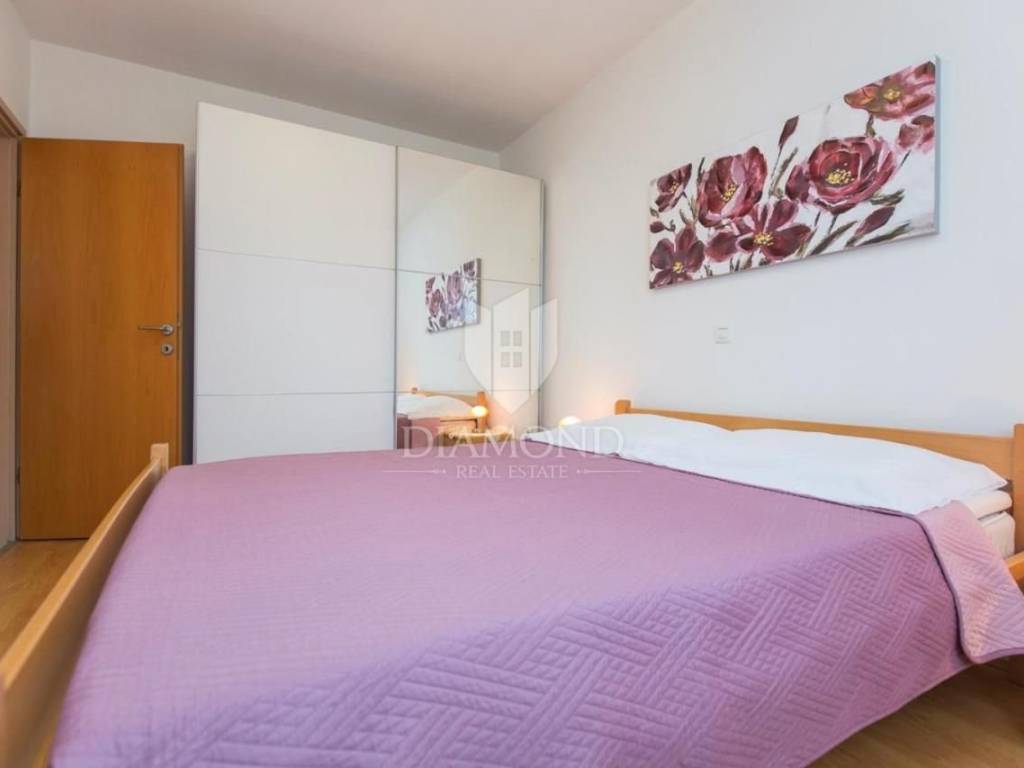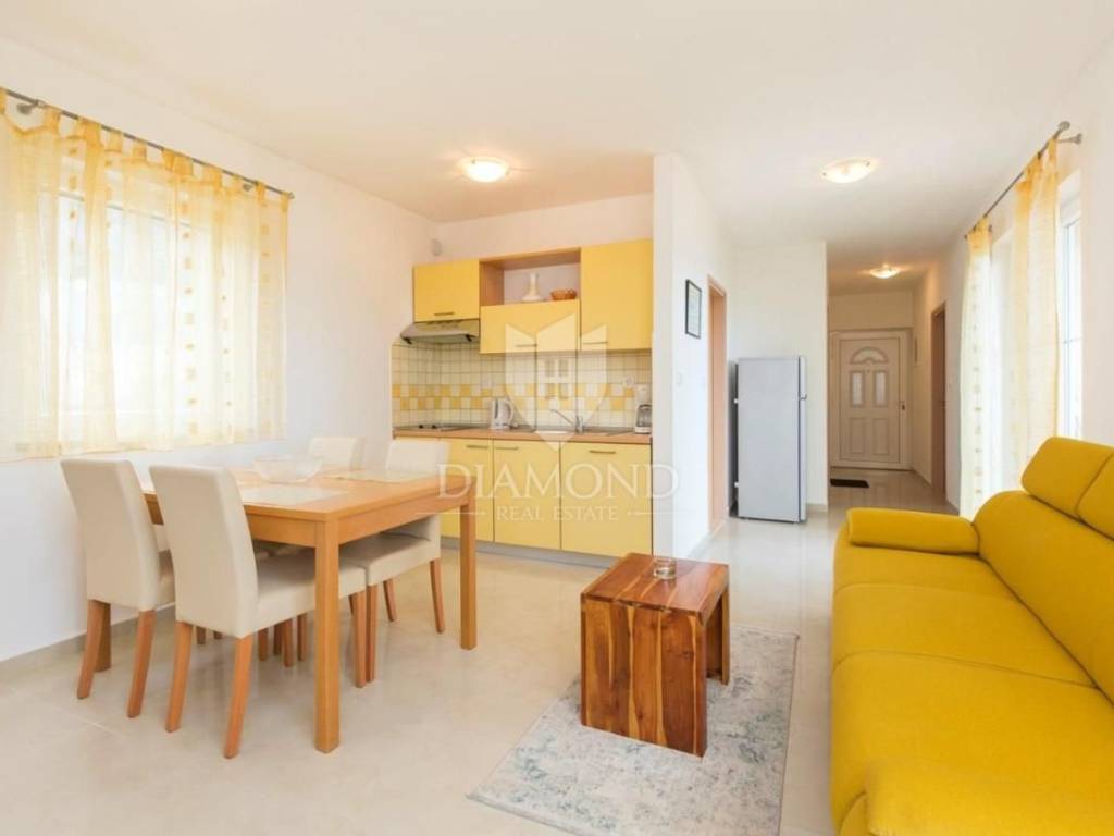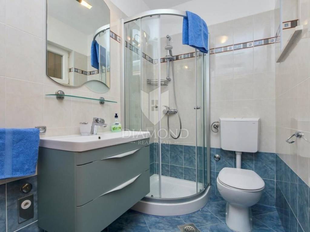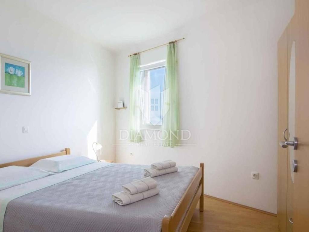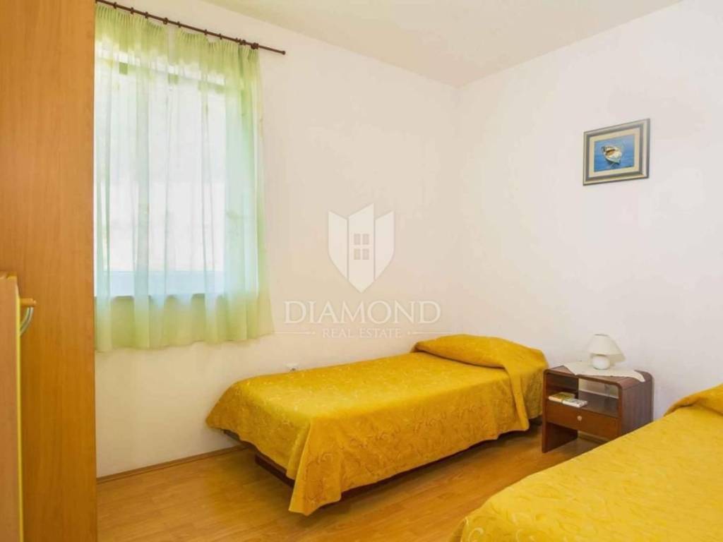 Dva stana na katu površine 52m2 i 50m2 svaki s dvije spavaće sobe, prostranim dnevnim boravkom spojenim s kuhinjom i blagovaonom, te izlazom na terasu s očaravajućim pogledom na more. Svaki stan također ima svoju kupaonicu.
