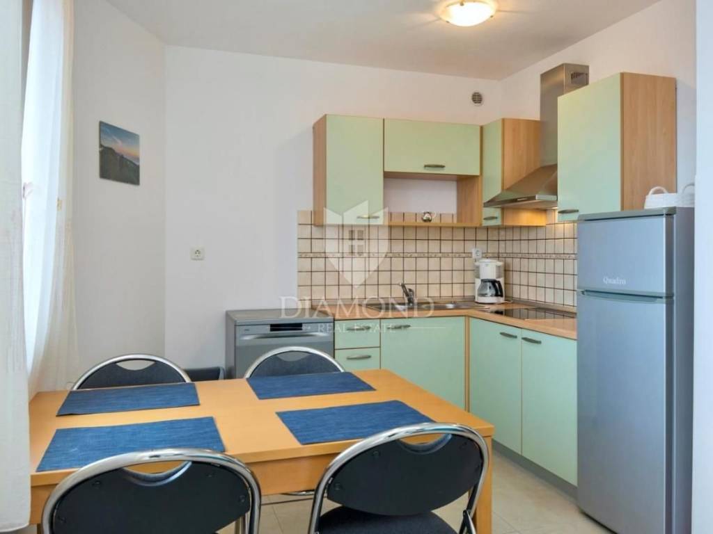 Drugi nešto manji stan površine 44m2 se sastoji od dnevnog boravka također spojenog s kuhinjom i blagavaonom s izazom na terasu, jedne spavaće sobe, kupaone i ostave.