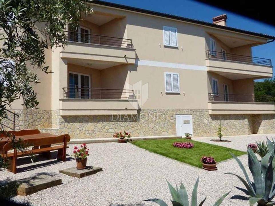Ova predivna apartmanska kuća smještena je na izvrsnoj lokaciji udaljena je 15 minuta vožnje od centra grada Labina, samo 500 metara od plaže, s impresivnim pogledom na more.