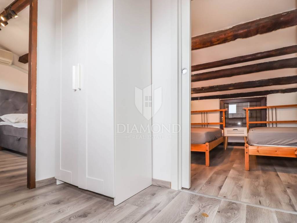 U samom srcu staroga grada Rovinja, na iznimnoj lokaciji svega 100 metara od mora, smješten je dvoetažni stan koji predstavlja pravu rijetkost na tržištu. Nalazi se u održavanoj zgradi s kvalitetnim stubištem, a na samom vrhu zgrade otvara se stan koji oduzima dah. Kombinacija autentičnog kamena i modernog uređenja pruža savršenu ravnotežu tradicije i suvremenog života. Iz svake prostorije pruža se pogled na more, crkvu svete Eufemije i stari grad, a veliki prozori propuštaju obilje prirodnog svjetla i svježeg zraka.