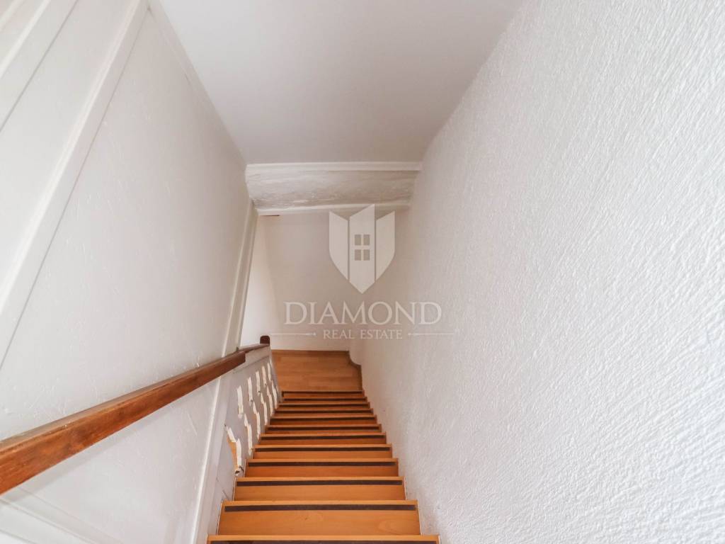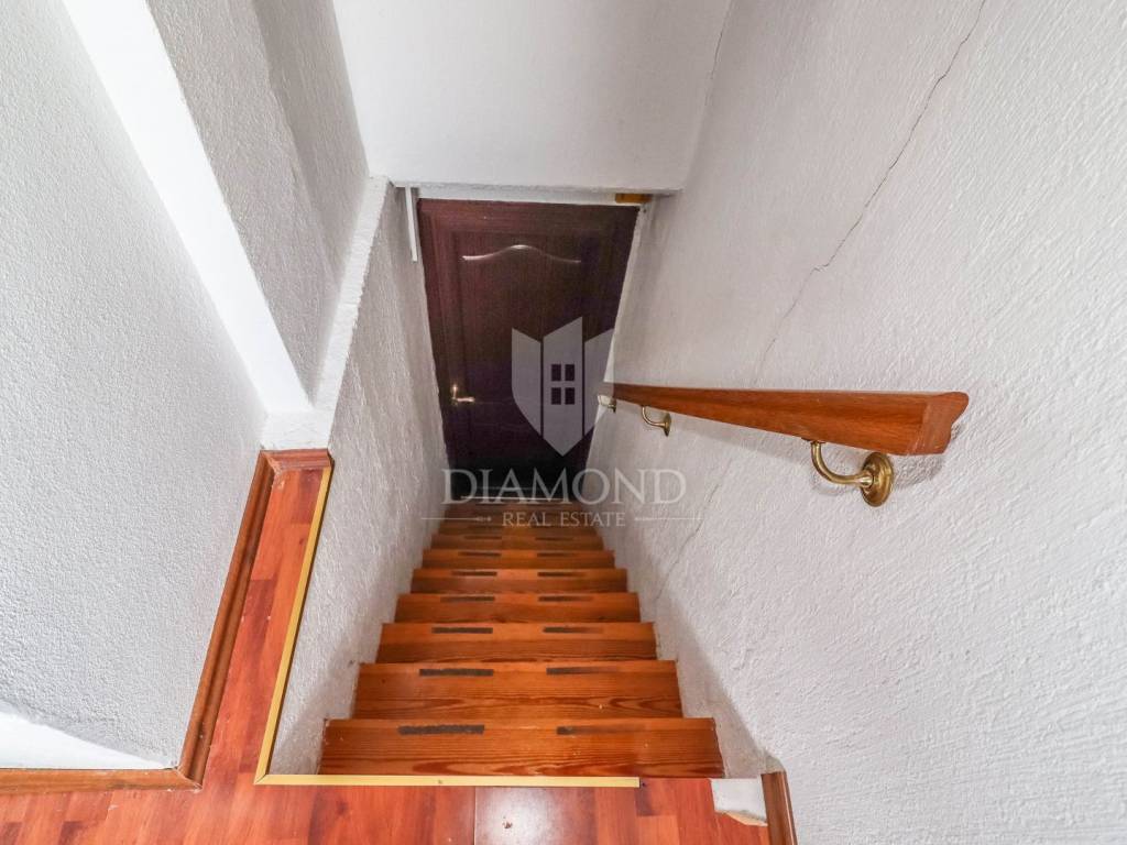 Stan ima iznimno funkcionalan raspored. Na donjoj etaži nalazi se iznimno prostran dnevni boravak, rijetko velik za ovaj dio grada, povezan s kuhinjom i blagovaonicom te prekrasnim funkcionalnim kaminom. Sve je novo i promišljeno uređeno. Tu je i velika kupaonica, a donja etaža ima čak pet prozora, što prostoru daje dodatnu prozračnost i svjetlost. Drvene stepenice vode na gornju etažu gdje se nalazi mali hodnik i dvije spavaće sobe. S ove etaže pogled jednostavno ostavlja bez daha.