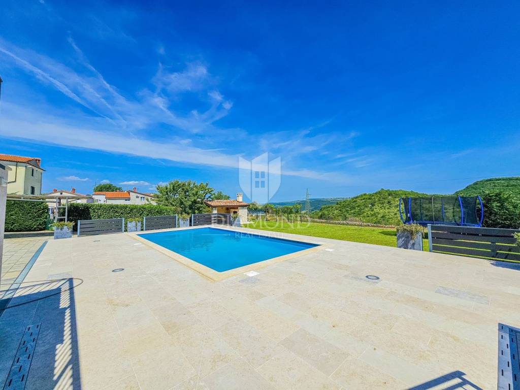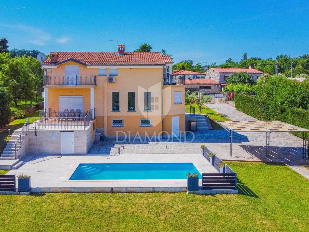 U mirnom i zelenilom okruženom dijelu Istre, između Momjana i Kaštela, smještena je ova idlična vila koja savršeno spaja suvremeni dizajn, udobnost i nenametljivi luksuz. Udaljena svega nekoliko minuta od pitoresknih gradića i svih potrebnih sadržaja, ova nekretnina nudi potpunu privatnost i opuštanje uz otvoren pogled na prirodu i more.