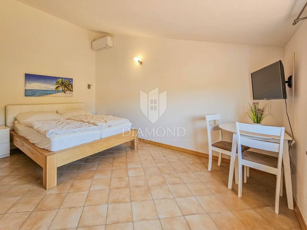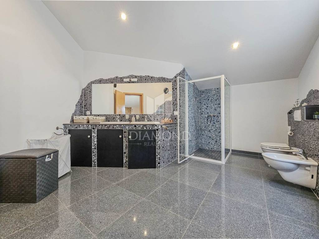 Vila je građena od visokokvalitetnih materijala, a sustav podnog grijanja i klimatizacije u svakoj prostoriji osigurava ugodnu temperaturu tijekom cijele godine. Spoj estetike, kvalitete gradnje i mirnog okruženja čini ovu nekretninu idealnim domom za obitelj, ali i izvrsnom investicijom u turizam.