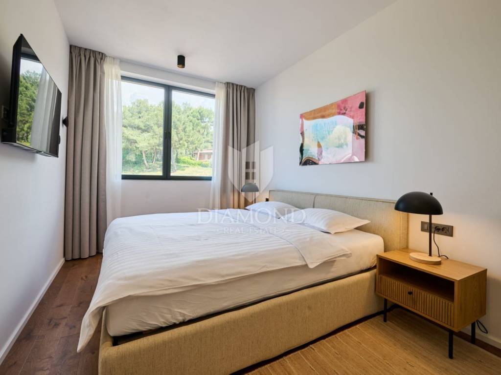 Na prodaju je moderna, novija kuća s natkrivenim bazenom, smještena na mirnoj lokaciji svega 1.500 m od mora i nekoliko kilometara od turističkog središta Poreča. Nekretnina se nalazi u uređenoj i tihoj ulici, pogodnoj za miran obiteljski život, ali prvenstveno idealna kao turistička investicija.