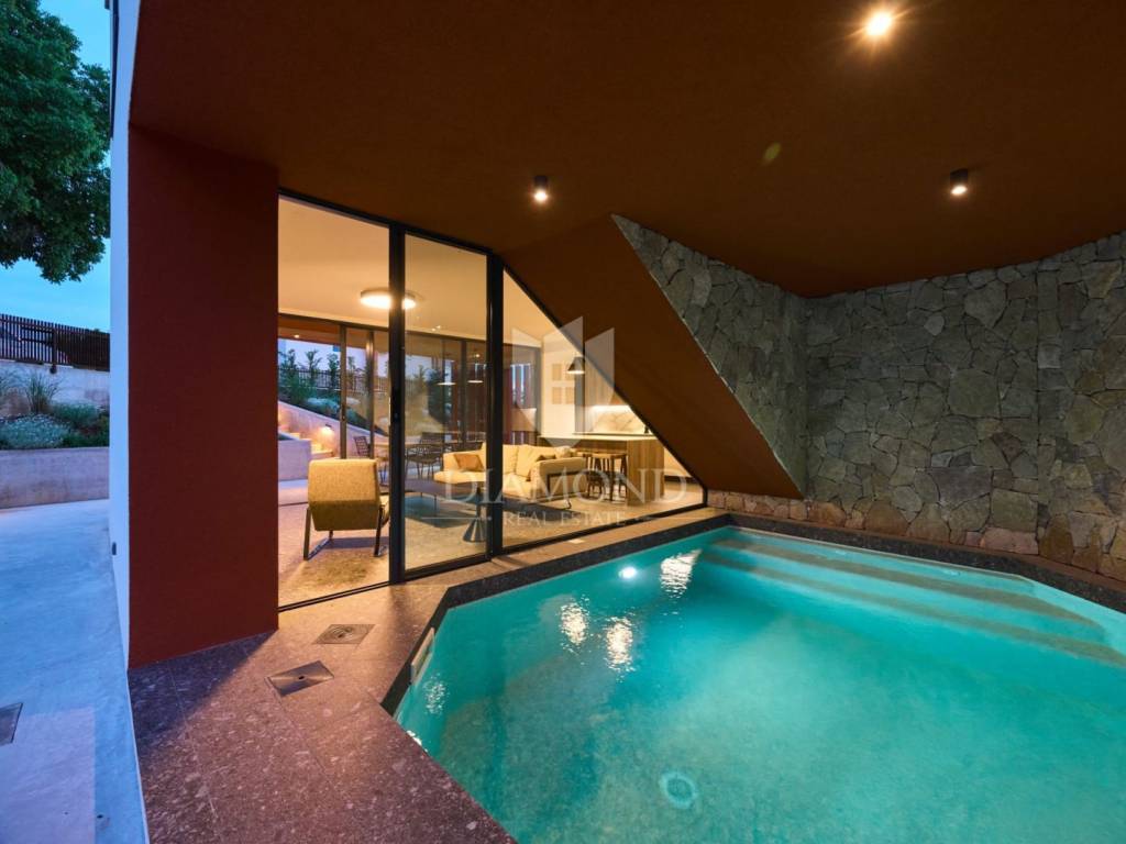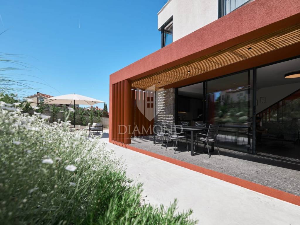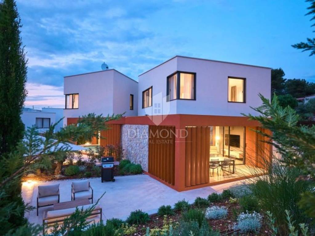 Kuća površine 130 m² sastoji se od tri prostrane spavaće sobe, dvije kupaonice i dodatnog WC-a. Dnevni boravak i potpuno opremljena kuhinja povezani su u otvoreni prostor s direktnim izlazom na vrt. Okućnica od 375 m² uključuje privatni vrt i natkriveni bazen, idealan za uživanje i odmor.
