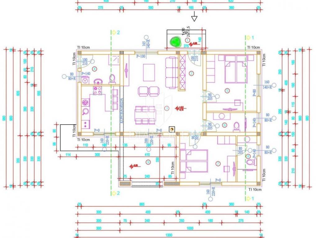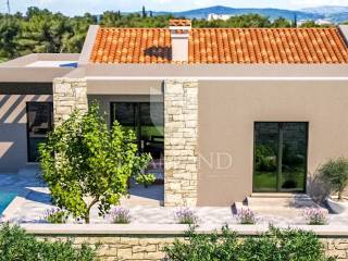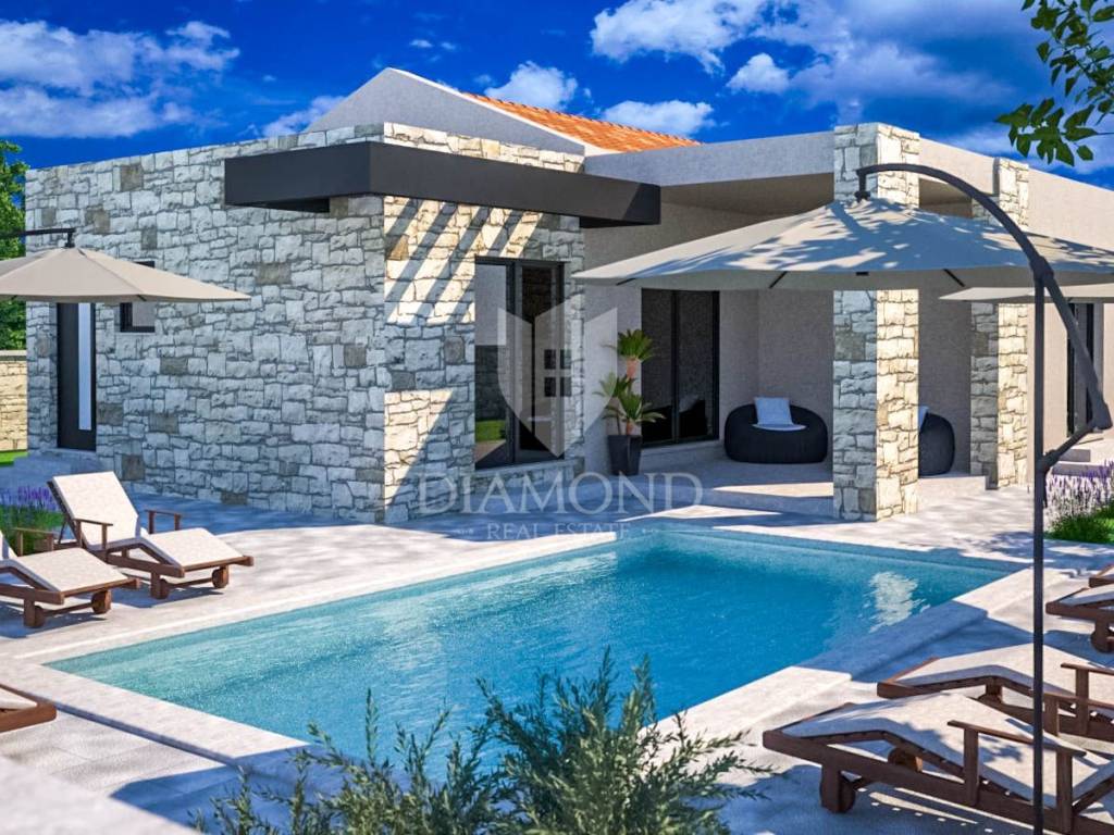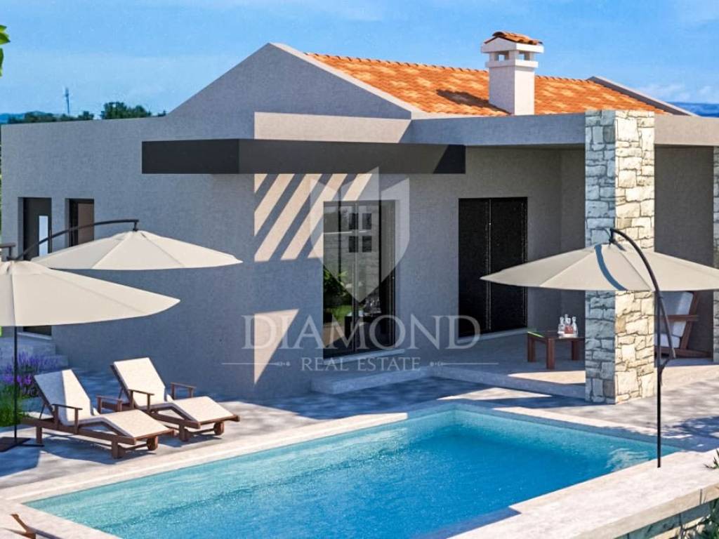 Sama kuća odiše modernim komforom na 95.32m2 prostora smještenog na okućnici od 513m2. Uživajte u otvorenom prostoru dnevnog boravka s kuhinjom i blagovaonicom, te u dvije prostrane spavaće sobe, od kojih jedna ima svoju vlastitu kupaonicu. Iz dnevnog boravka izlazite na prekrasnu natkrivenu terasu koja vodi do sunčališta i bazena od 28m2. Osigurana su i dva parkirna mjesta za vašu praktičnost.