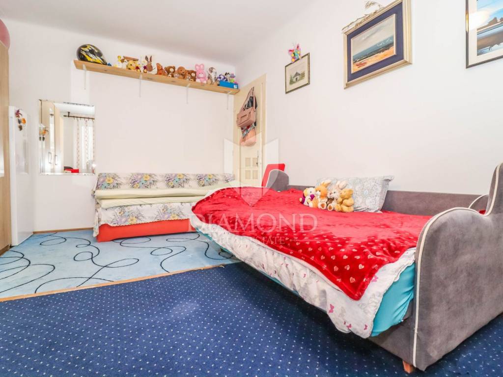Stan je veličine nešto veće od 37m2 te se sastoji od dnevnog dijela sa kuhinjom i blagovaonicom, prostrane spavaće sobe i kupaonicom. Kupaonica je nedavno renovirana, a u stan se uvijek ulaže i održava se njegova kvaliteta. Grijanje je putem peći na drva, a hlađenje je putem klima uređaja.