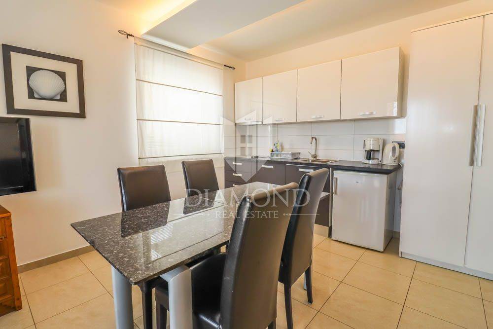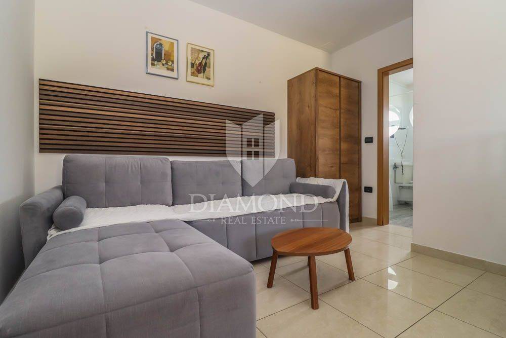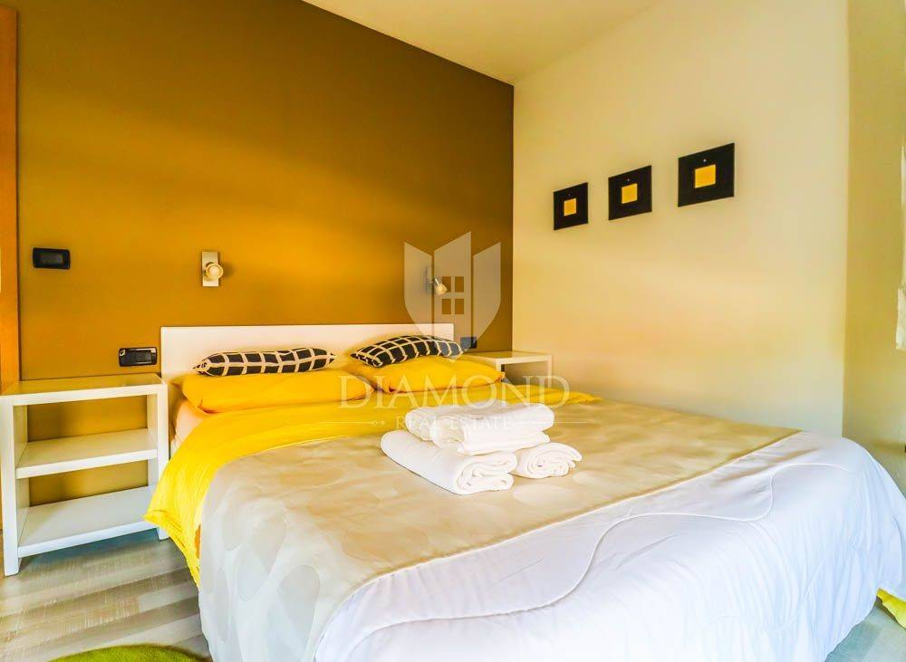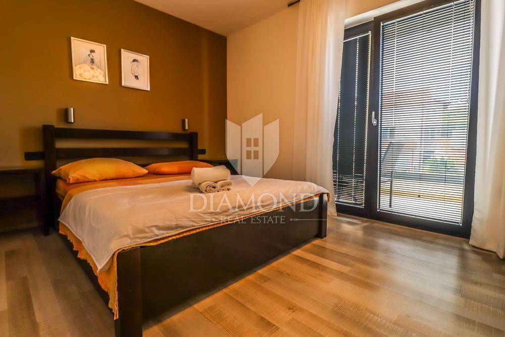 Pješčana Uvala, jedno od najatraktivnijih i najelitnijih lokacija u Istri smjestila se ova apartmanska vila. Udaljena 5 minuta hoda od mnogobrojnih predivnih plaža, restorana, barova i svega što odmor čini ljepšim i zabavnijim. Nalazi se u mirnoj slijepoj ulici okružena obiteljskim kućama i kućama za odmor.