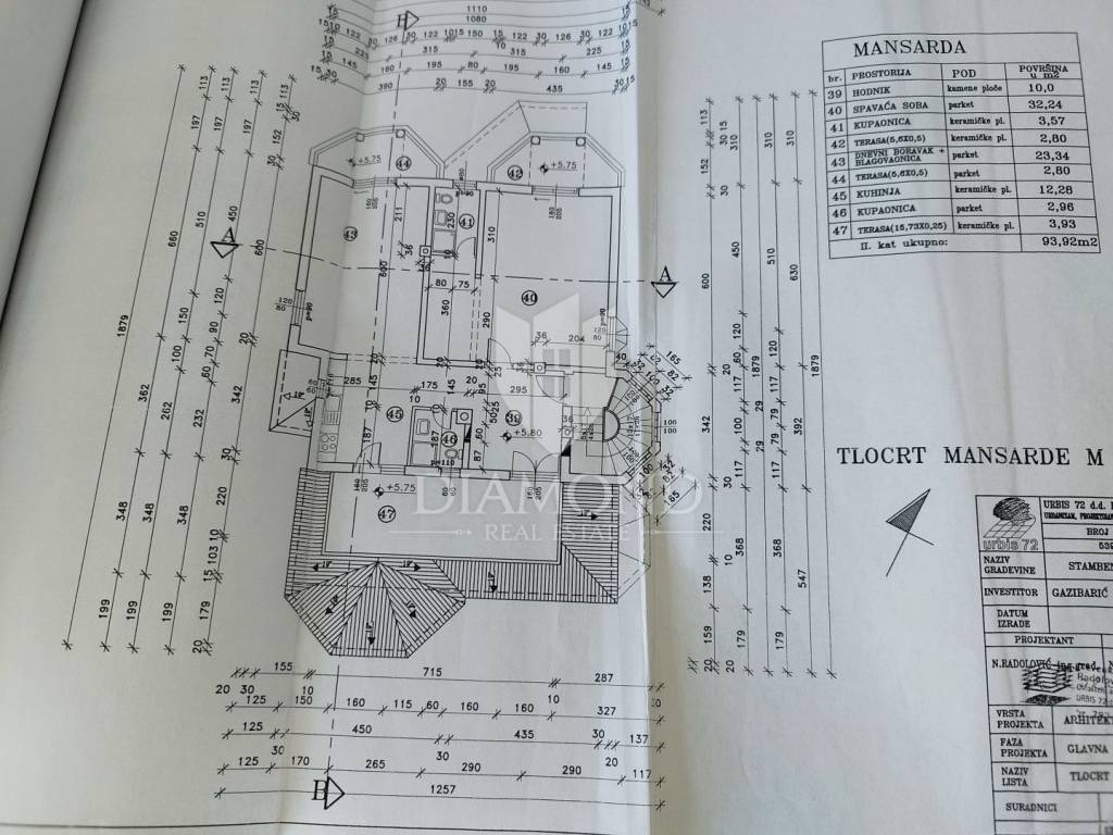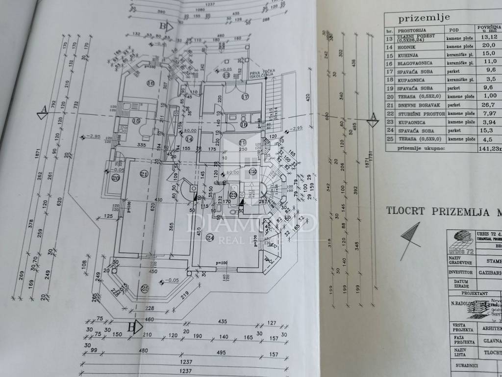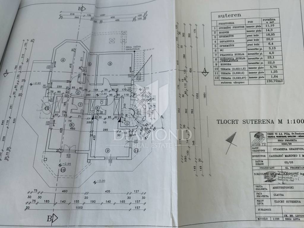 Vila je podijeljena u 8 apartmana na 497m2 stambene površine. 4 apartmana su jednosobna, jedan dvosoban, dva studio-apartmana i jedan veliki stan sa 3 spavaće sobe.