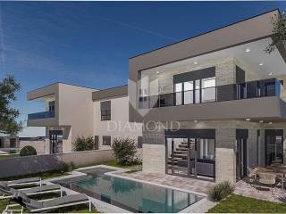 Istra, Medulin -- Ova moderna dvojnica smjestila se u mirnom dijelu Medulina. Na odličnoj lokaciji svega 700m od mora u blizini svih mnogobrojnih sadržaja. Medulin obima turističkim sadržajima poput raznih barova na plaži, restorana, mnogobrojnih plaža i mnogo avanturističkih opcija. -- Ova dvojnica se prostire kroz 220m2. Cijela kuća zrači modernim i suvremenim dizajnom. Eksterijer čini kombinacija moderne arhitekture i kamena. Cijela kuća je visokokvalitetno opremljena. U prizemlju se nalazi otvoreni prostor koji dijeli kuhinja sa blagovaonicom i prekrasnim dnevnim prostorom koji nas vodi do bazena i plaže. Stepenice nas vode na kat gdje se nalaze 3 spavaće sobe od kojih svaka ima vlastitu kupaonicu te dvije dijele prostranu terasu. Na okućnici se nalazi bazen od 30m2 sa hidromasažnim prostorom te tuš. Kuća također posjeduje dva parkirna mjesta kao i garažu za Vaš automobil. -- Ova kuća nudi budućem vlasniku komfor i mir. Nekretnina vrijedna pažnje za svakoga tko traži modernu, novu i visokokvalitetnu kuću. Zbog svoje odlične lokacije nudi i mogućnost bavljenja turizmom i time brz povrat investiranog kapitala.