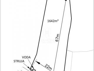 Parcela se prostire na 1.642 m² i nalazi se unutar građevinske zone, s mogućnošću gradnje obiteljske kuće, vile za odmor ili sličnog objekta prema važećem prostornom planu. Teren je ravan i lako pristupačan, što olakšava buduće građevinske radove.