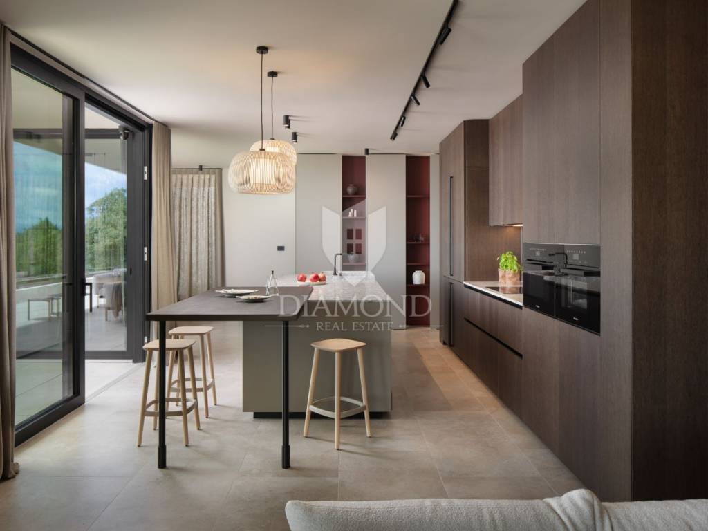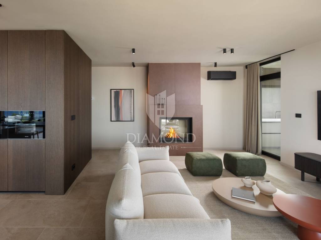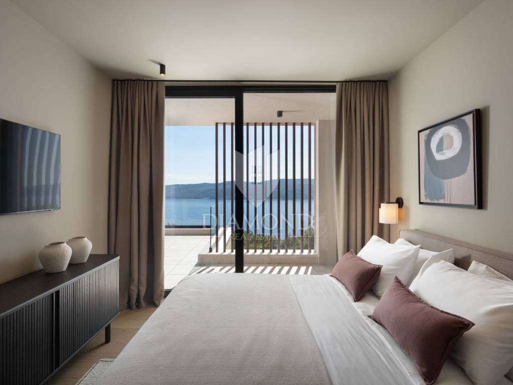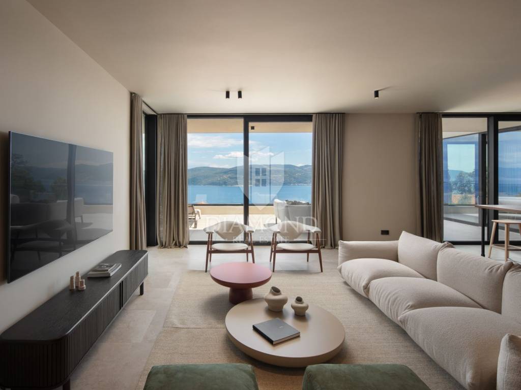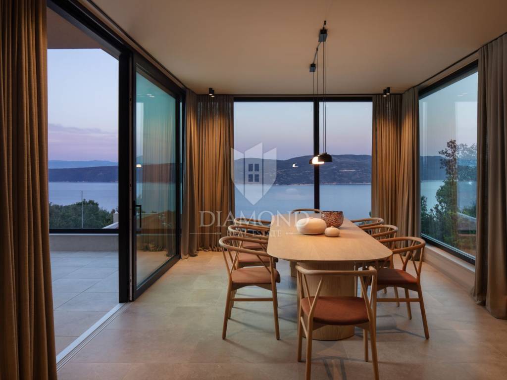 Na prekrasnoj obali istočne Istre, na posebnoj lokaciji, smjestila se ova impresivna novogradnja sa otvorenim pogledom na more i Kvarner.