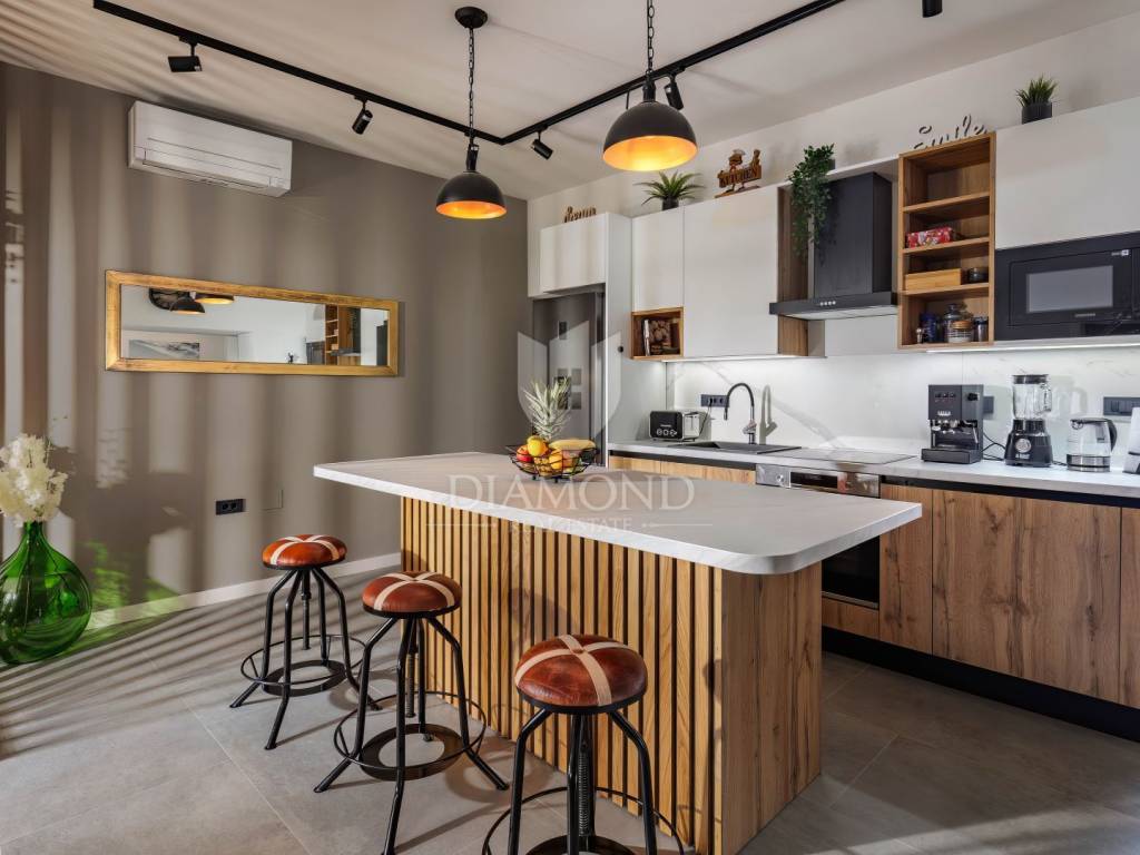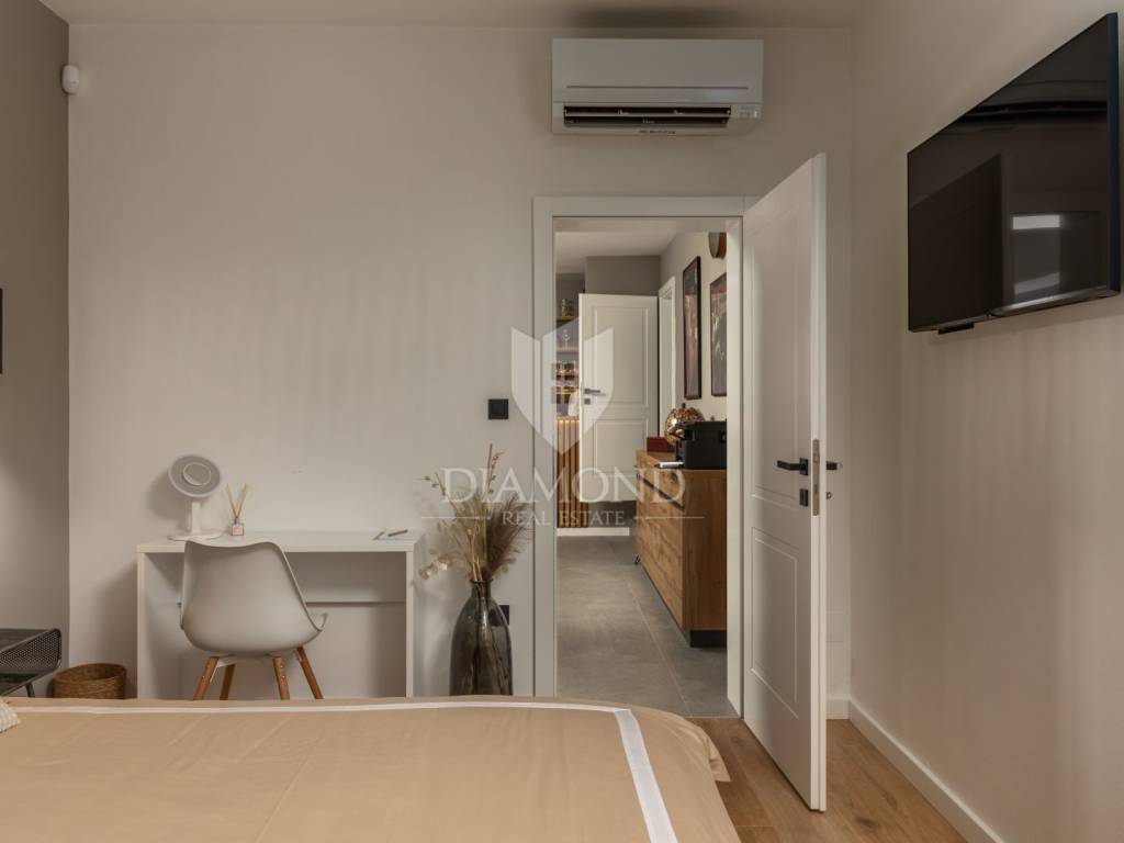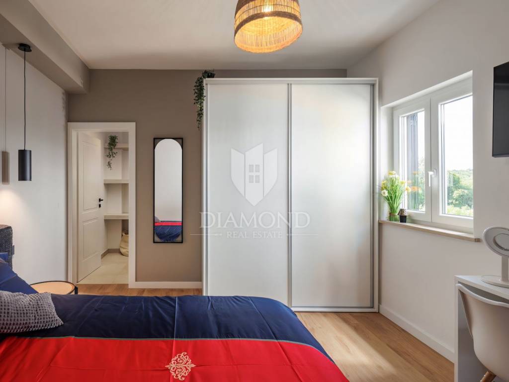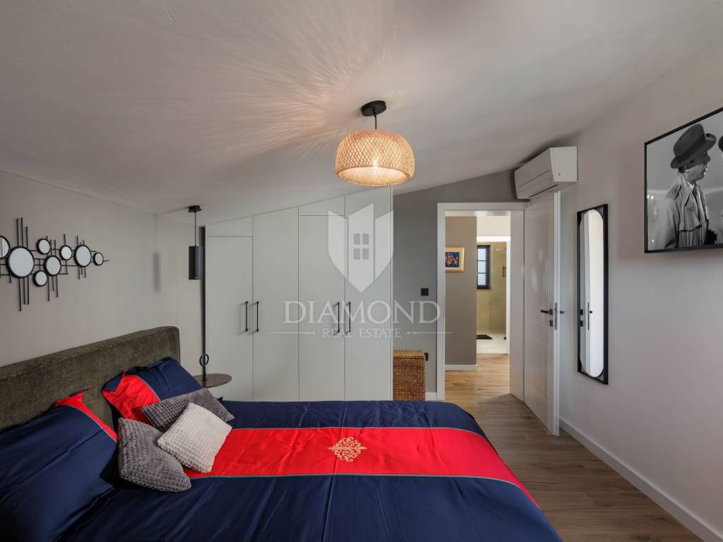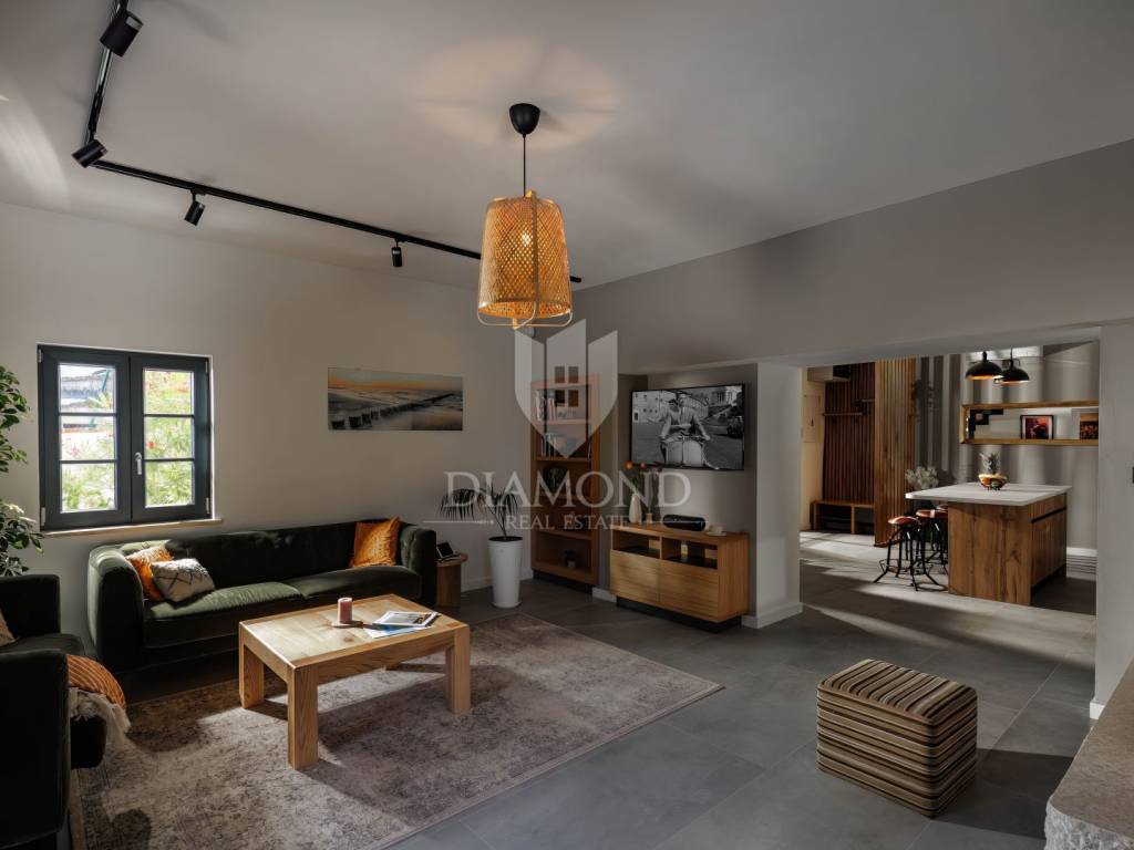Unutrašnjost vile uređena je s najfinijim Natuzzi namještajem, pružajući vrhunsku udobnost i luksuz. Svaka prostorija je pažljivo dizajnirana kako bi stvorila harmoničan i elegantan te funkcionalan ambijent.