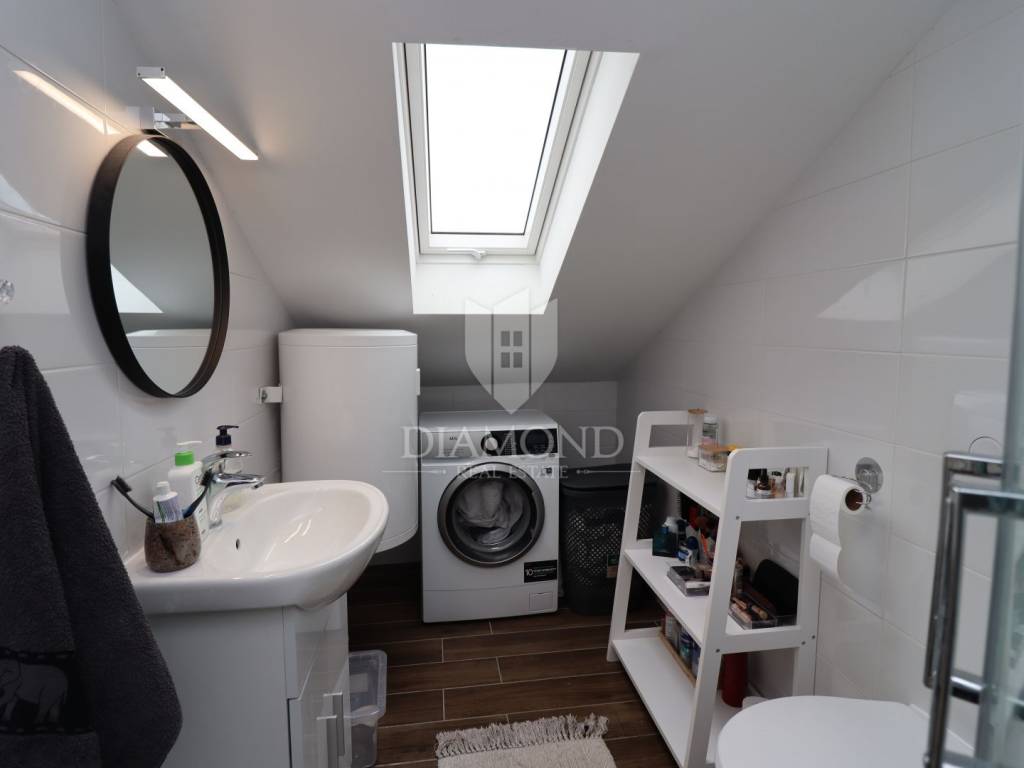 Druga etaža: na gornjoj etaži smještena je velika glavna spavaća soba koja nudi privatnost i mir, kao i manja soba koja je prenamijenjena u funkcionalan walk-in ormar, pružajući obilje prostora za odlaganje odjeće. Uz to, na ovoj etaži nalazi se i dodatna kupaonica.