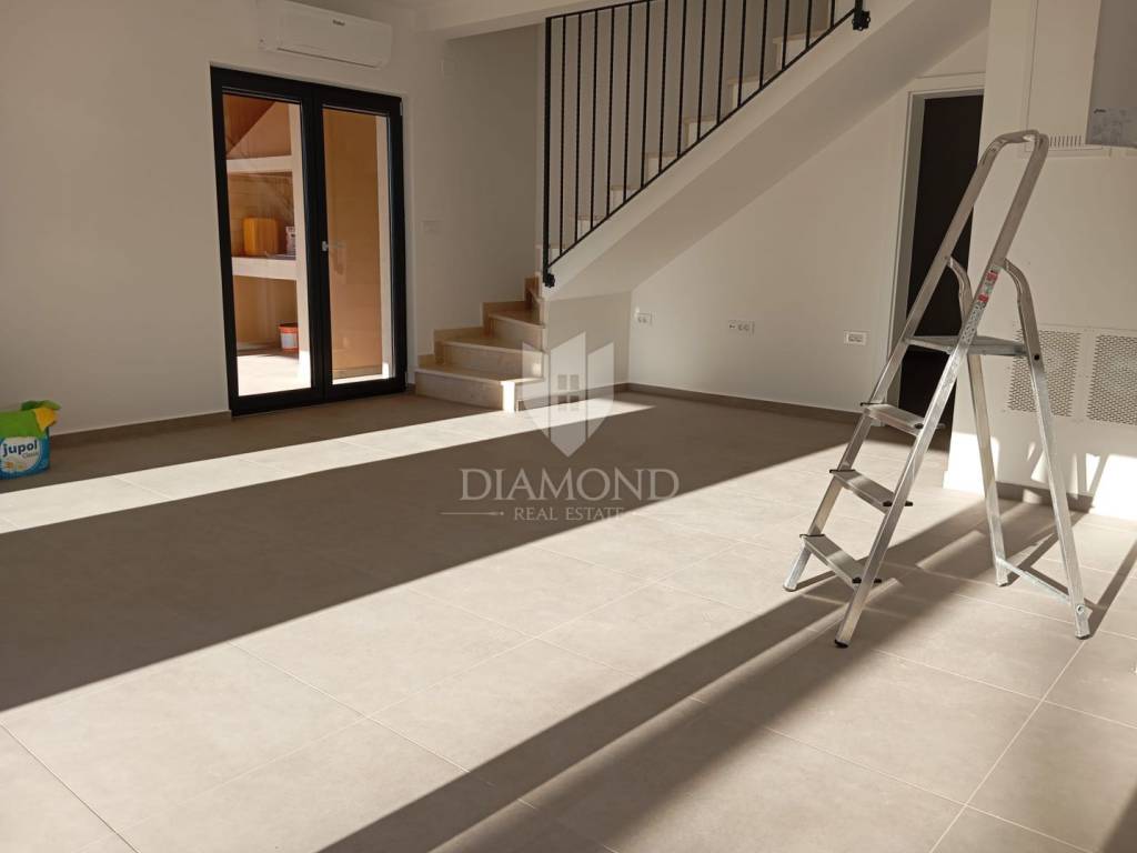 Prizemlje odiše prostranošću, zahvaljujući open space konceptu koji povezuje dnevni boravak, kuhinju i blagovaonicu, stvarajući toplu i ugodnu atmosferu. Na istoj etaži nalazi se i spavaća soba te kupaonica, pružajući praktičnost i lakoću svakodnevnog života, također se nalazi i WC s bojlerom. Kat je osmišljen kako bi zadovoljio različite potrebe – tu su dvije spavaće sobe, od kojih jedna ima vlastitu kupaonicu, dok se dodatna kupaonica nalazi zasebno.