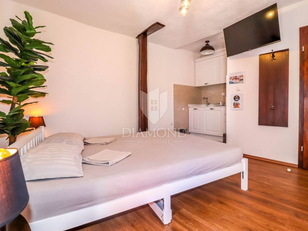 U samom srcu Rovinja, svega pedesetak metara od mora, smjestio se ovaj šarmantan studio apartman koji spaja atraktivnu lokaciju i sigurnu investiciju. Položaj u drugom redu do obale čini ga rijetkom prilikom za sve koji žele vlastiti kutak u jednom od najljepših gradova na Jadranu ili uhodan posao u turizmu.