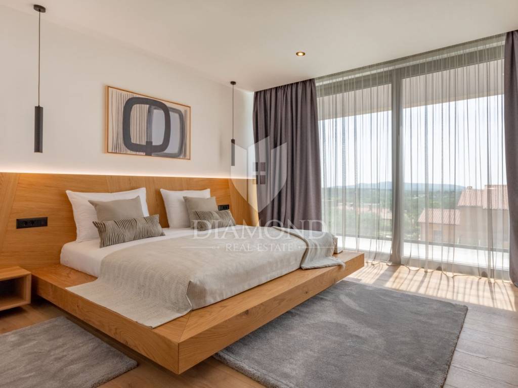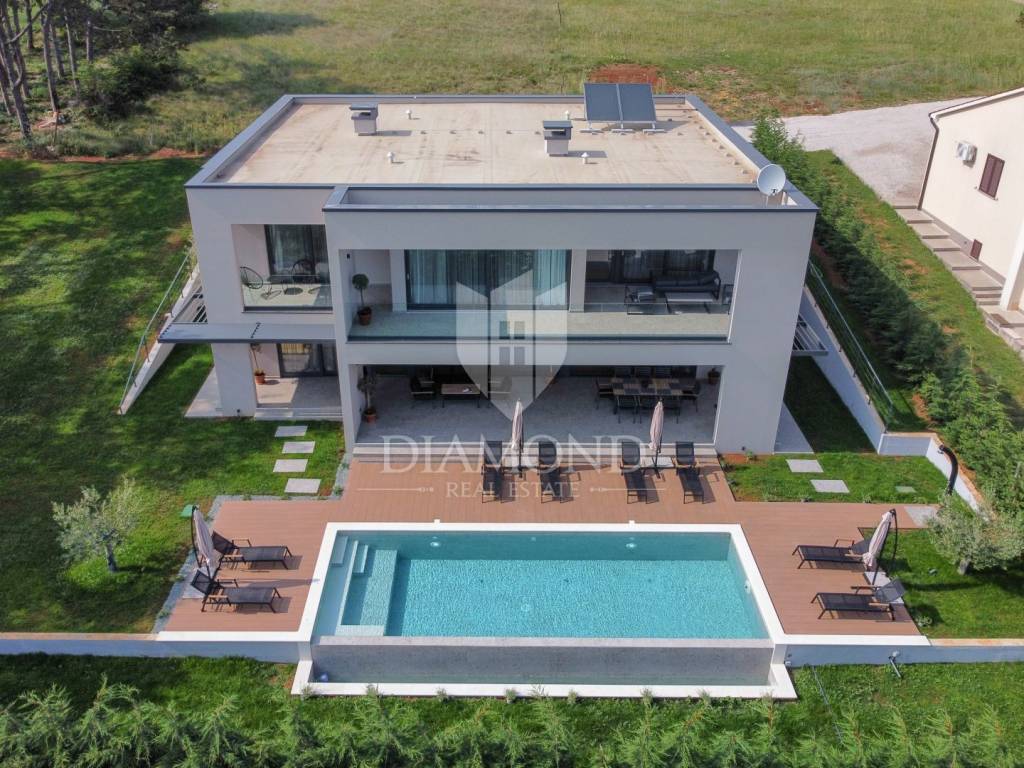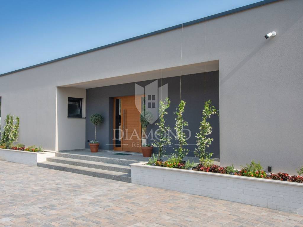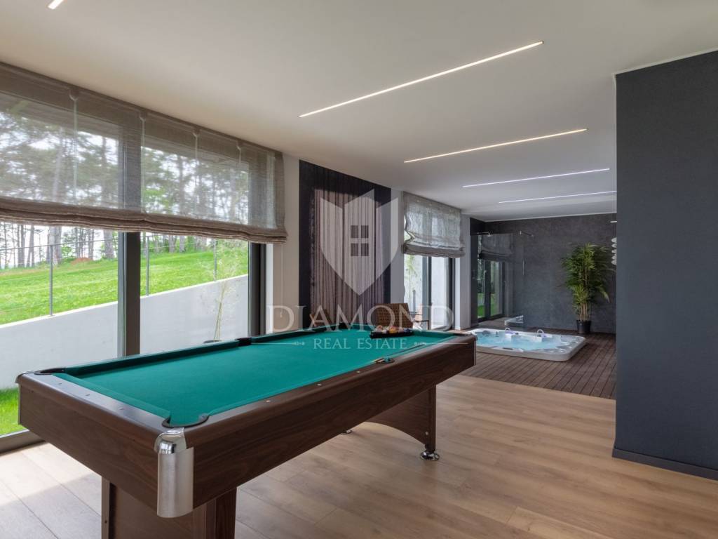Prodajemo Villu u Istri u okolici grada Labina i turističkog resorta Rapca. Villa se nalazi u prekrasnom naselju na povišenom djelu okružena prirodom i uređenim kućama. Villa je potpuno dovršena i uređena, opremljena je vrhunskim materijalima, sve prostorije se griju i hlade pomoću toplinske pumpe, u kupaonama su postavljeni radiatori. Sav namještaj je rađen po mjeri od kvalitetnog drva. Villa ima ukupno 4 spavaće sobe, velike dnevne prostorije i prekrasnu spa zonu sa jacuzziem, velikom saunom, minibarom i biljar salom. Terasa u prizemlju je natkrivena sa koje se dolazi do djela okućnice na kojem se nalazi bazen sa hidromasažnim djelom i plivačkim djelom sa ugrađenim protustrujnim plivanjem. Villa ima veliku okućnicu od 1231 četvornog metra, kolni prilaz sa gornje strane je dovoljan za 3 velika automobila, popločen i uređen. Sve spavaće sobe imaju integrirane kupaone i izlaze na prostrane balkone. Zbog opreme i uređenja Villa pruža potpuni konfor i ugođaj boravka tokom svih 12 mjeseci u godini.