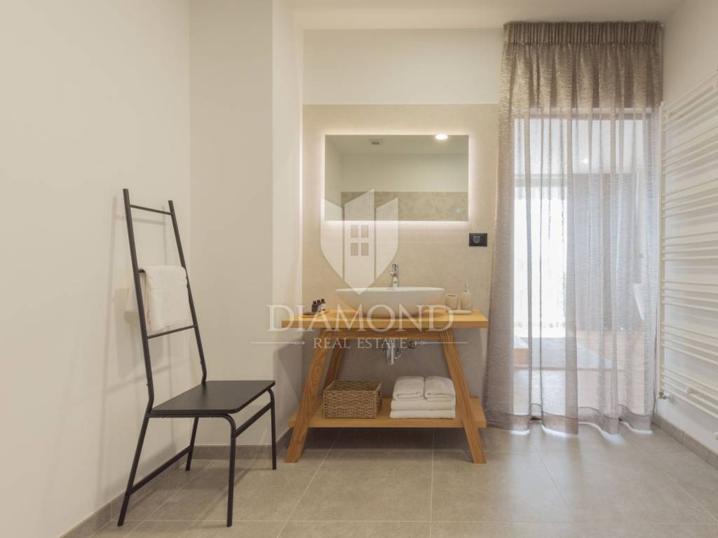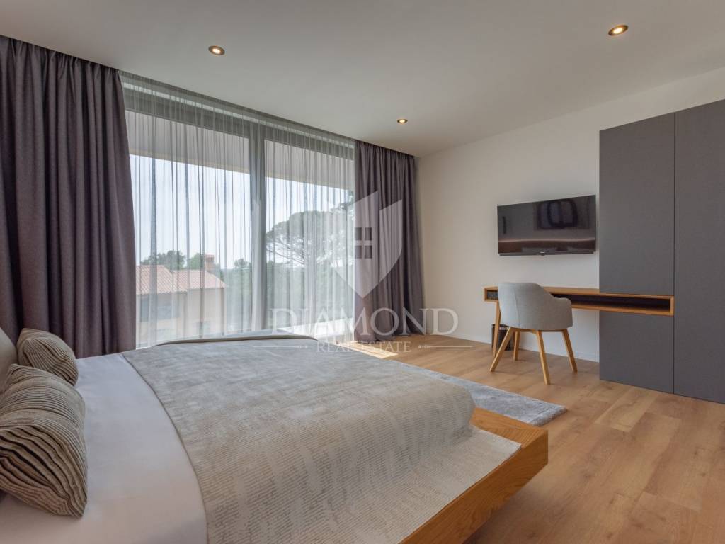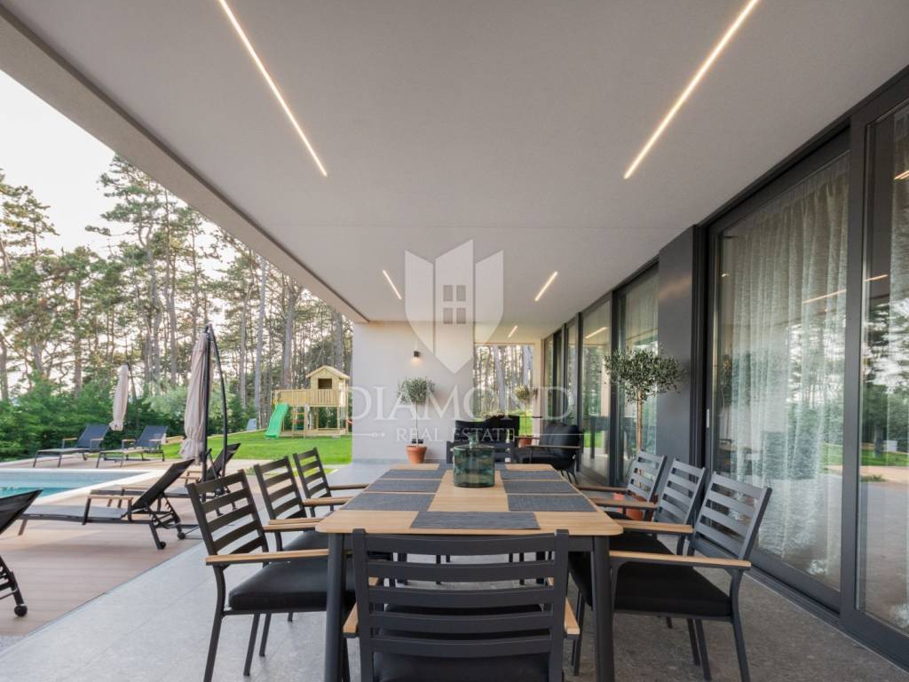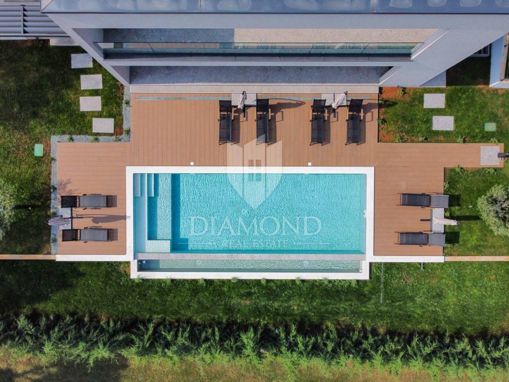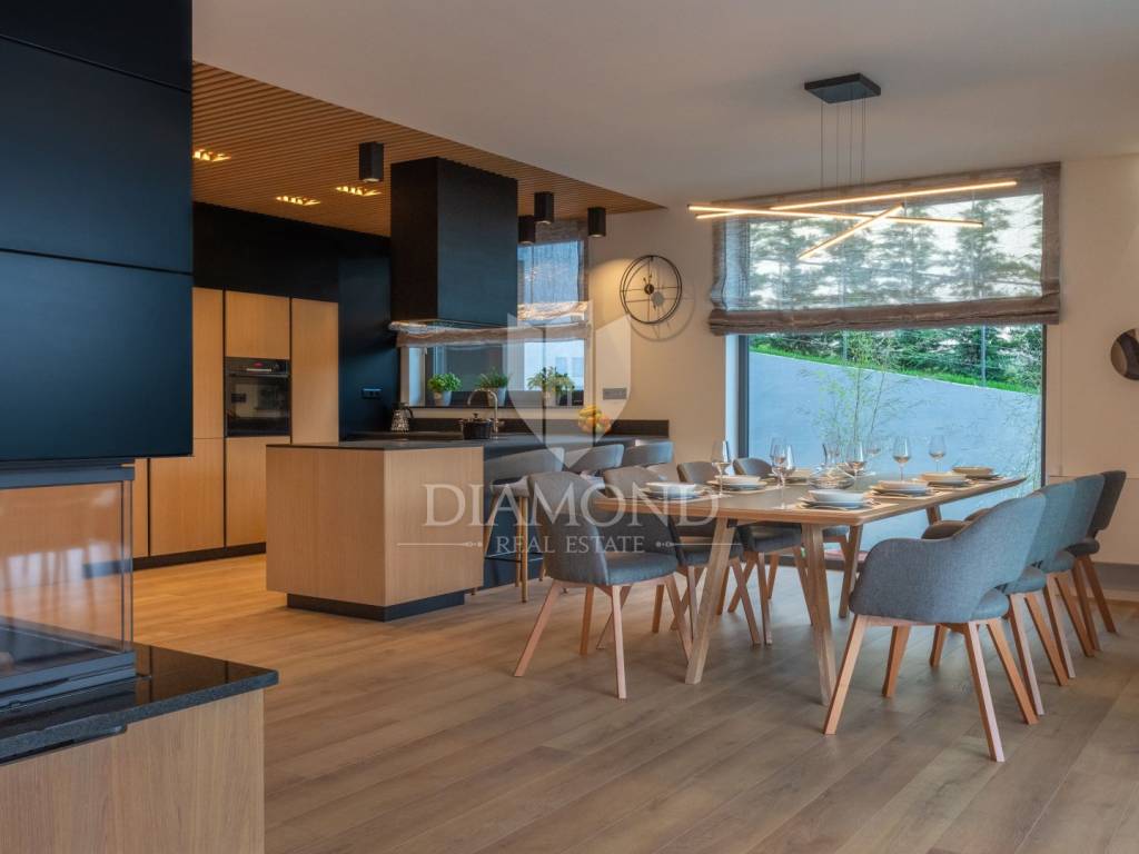 Prodajemo Villu u Istri u okolici grada Labina i turističkog resorta Rapca. Villa se nalazi u prekrasnom naselju na povišenom djelu okružena prirodom i uređenim kućama. Villa je potpuno dovršena i uređena, opremljena je vrhunskim materijalima, sve prostorije se griju i hlade pomoću toplinske pumpe, u kupaonama su postavljeni radiatori. Sav namještaj je rađen po mjeri od kvalitetnog drva. Villa ima ukupno 4 spavaće sobe, velike dnevne prostorije i prekrasnu spa zonu sa jacuzziem, velikom saunom, minibarom i biljar salom. Terasa u prizemlju je natkrivena sa koje se dolazi do djela okućnice na kojem se nalazi bazen sa hidromasažnim djelom i plivačkim djelom sa ugrađenim protustrujnim plivanjem. Villa ima veliku okućnicu od 1231 četvornog metra, kolni prilaz sa gornje strane je dovoljan za 3 velika automobila, popločen i uređen. Sve spavaće sobe imaju integrirane kupaone i izlaze na prostrane balkone. Zbog opreme i uređenja Villa pruža potpuni konfor i ugođaj boravka tokom svih 12 mjeseci u godini.