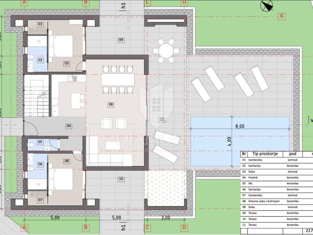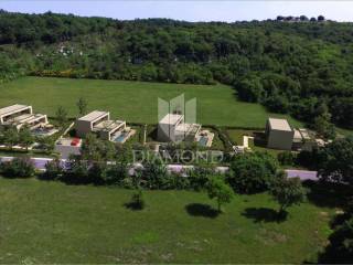 Prodajemo luksuznu modernu Villu sa bazenom na Istočnoj obali Istre. Villa se smjestila nadomak grada Labina i turističkog resorta Rapca, od centra grada udaljena je samo 5 kilometara iako se nalazi u potpuno mirnom i prirodnom okruženju. Villa ima ograđenu okućnicu od 1275 četvornih metara, površina Ville iznosi 303 četvorna metra sa 4 spavaće sobe, velikim dnevnim prostorima i terasama u prizemlju i na katu. U središnjem djelu dvorišta nalazi se veliki bazen sa uređenim sunčalištem i ljetna kuhinja. Sa lokacije se pruža prekrasan pogled na more i prirodu a prekrasne prirodne plaže su na svega 10 minuta vožnje. Villa je opremljena modernim sustavima grijanja i hlađenja u gradnji se koriste najkvalitetniji materijali na tržištu, dizajnirana je kako bi iskoristila puni potencijal lokacije na kojoj se nalazi.