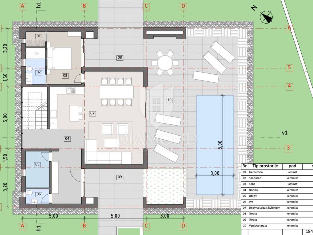 Prodajemo luksuznu modernu Villu sa bazenom na Istočnoj obali Istre. Villa se smjestila nadomak grada Labina i turističkog resorta Rapca, od centra grada udaljena je samo 5 kilometara iako se nalazi u potpuno mirnom i prirodnom okruženju. Villa ima ograđenu okućnicu od 817 četvornih metara, površina Ville iznosi 265 četvornih metara sa 3 spavaće sobe, velikim dnevnim prostorima i terasama u prizemlju i na katu. U središnjem djelu dvorišta nalazi se veliki bazen sa uređenim sunčalištem i ljetna kuhinja. Sa lokacije se pruža prekrasan pogled na prirodu a prekrasne prirodne plaže su na svega 10 minuta vožnje. Villa je opremljena modernim sustavima grijanja i hlađenja u gradnji se koriste najkvalitetniji materijali na tržištu, dizajnirana je kako bi iskoristila puni potencijal lokacije na kojoj se nalazi.