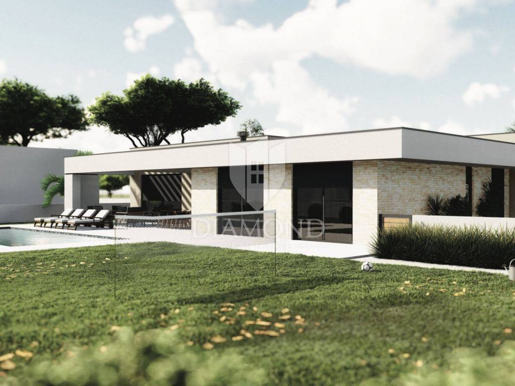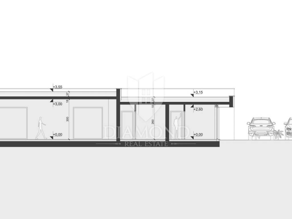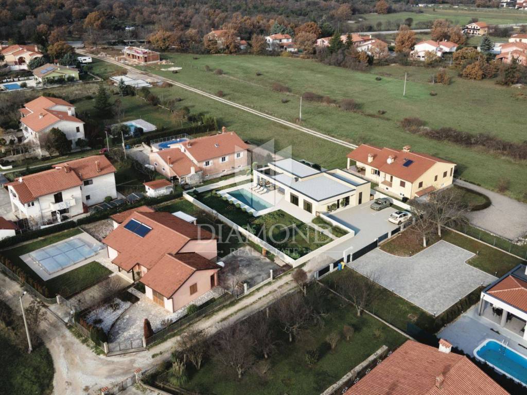 Prodajemo novu kuću za odmor u okolici grada Labina, kuća je građena kao prizemnica moderne arhitekture. Ukupna površina kuće iznosi 144.29 četvornih metara sa 3 spavaće sobe sa kupaonama, velikim dnevnim prostorima, natkrivenom vanjskom terasom, velikim bazenom sa uređenim sunčalištem. Kuća je opremljena modernim sustavom podnog grijanja koristeći toplinsku pumpu dok je hlađenje riješeno inverter klima uređajima. Kuća se prodaje potpuno dovršena i opremljena bez namještaja.