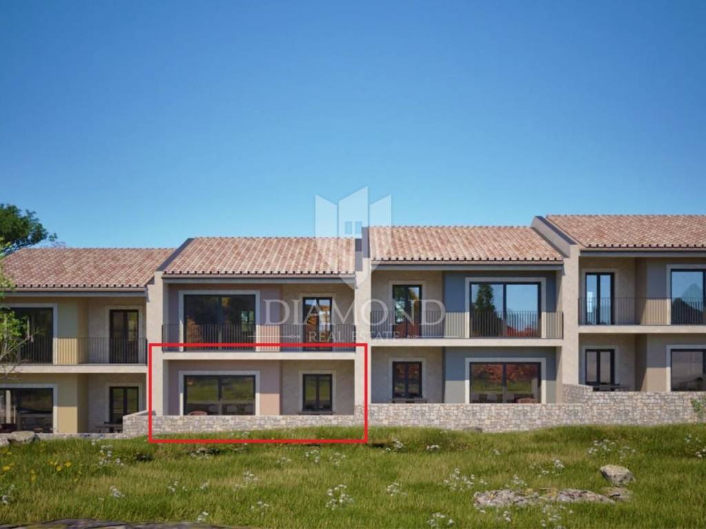 Zgrada je dio manjeg projekta koji obuhvaća četiri objekta u nizu, svaki s po dvije stambene jedinice. Ovaj stan nalazi se u prizemlju i prostire se na 60 m² unutarnjeg prostora, s dodatkom natkrivene terase od 11 m² te uređenim dijelom okućnice od približno 20 m², koja poziva na uživanje na otvorenom. Uz stan dolazi i vlastito parkirno mjesto.