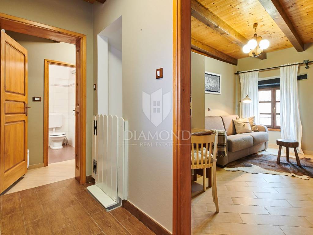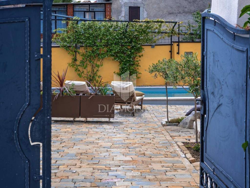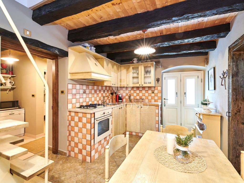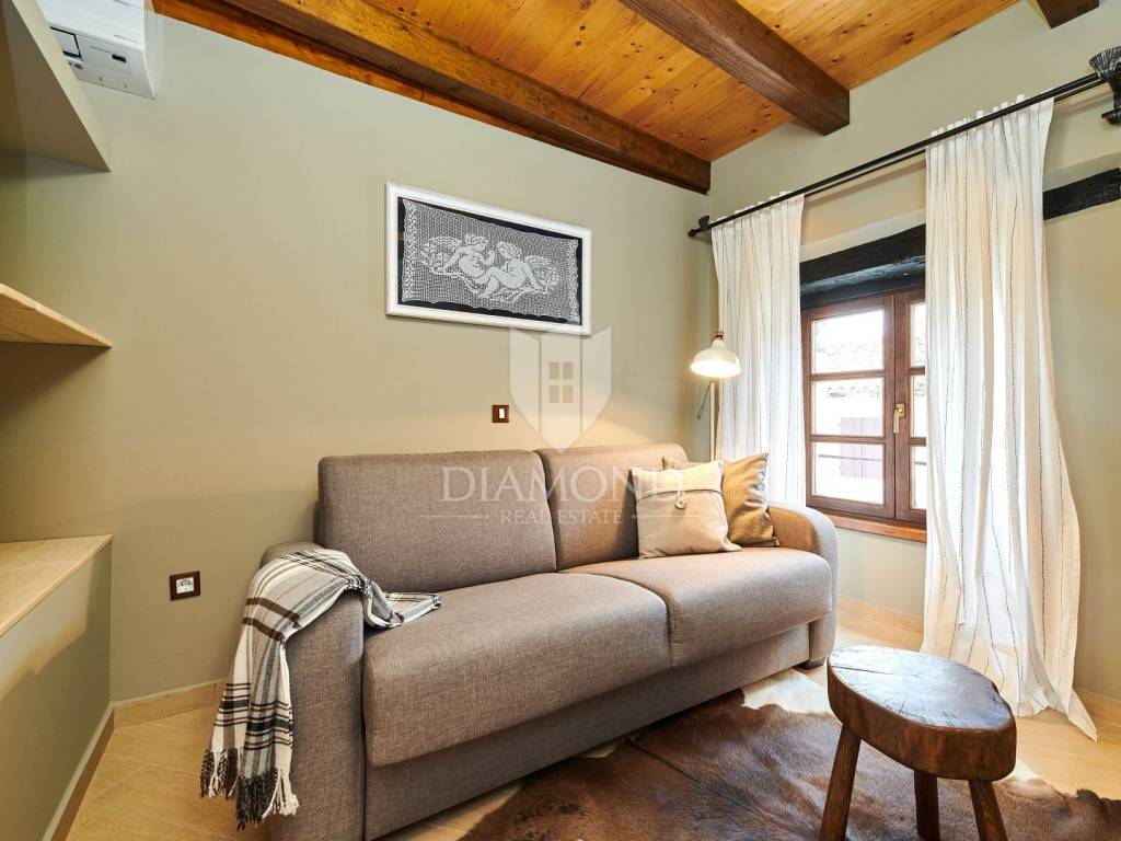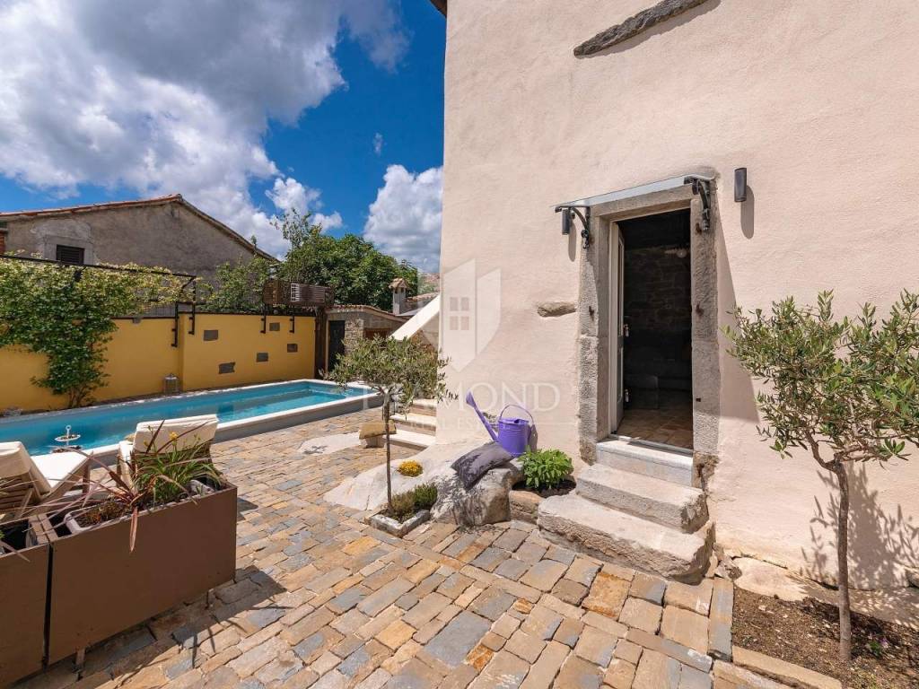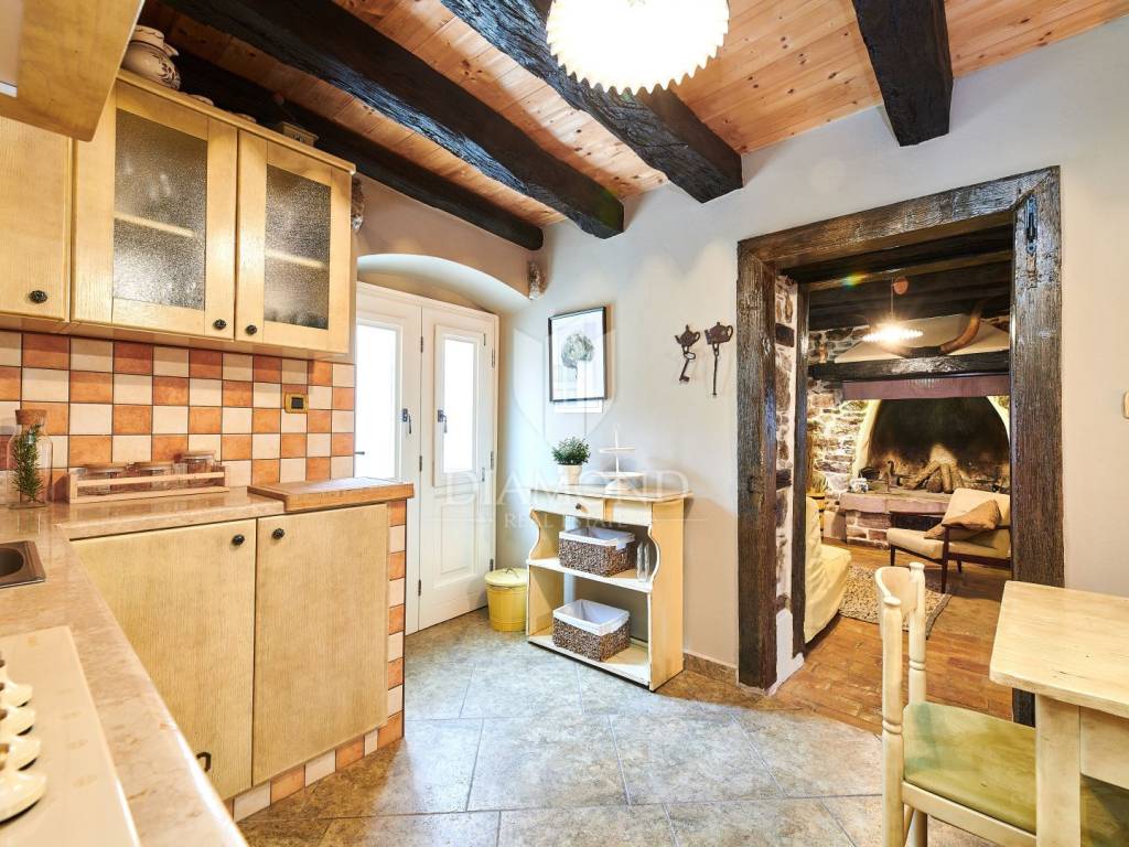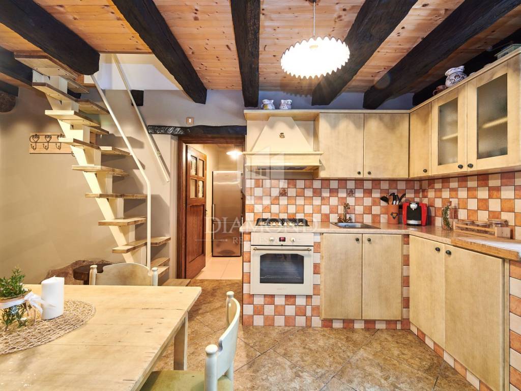 Ova predivna kuća u potpunosti je renovirana s iznimnim osjećajem za detalj i sklad između tradicionalne arhitekture i modernih potreba. U prizemlju se nalazi dnevni boravak s autentičnim ognjištem koji odiše toplinom i karakterom, kuhinja s blagovaonicom, gostinjski toalet te unutarnji bazen sa SPA zonom – pravi kutak za opuštanje tijekom cijele godine. Na katu su tri spavaće sobe, uključujući prostranu „family“ sobu s dodatnim ležajem, te tri elegantne kupaonice.