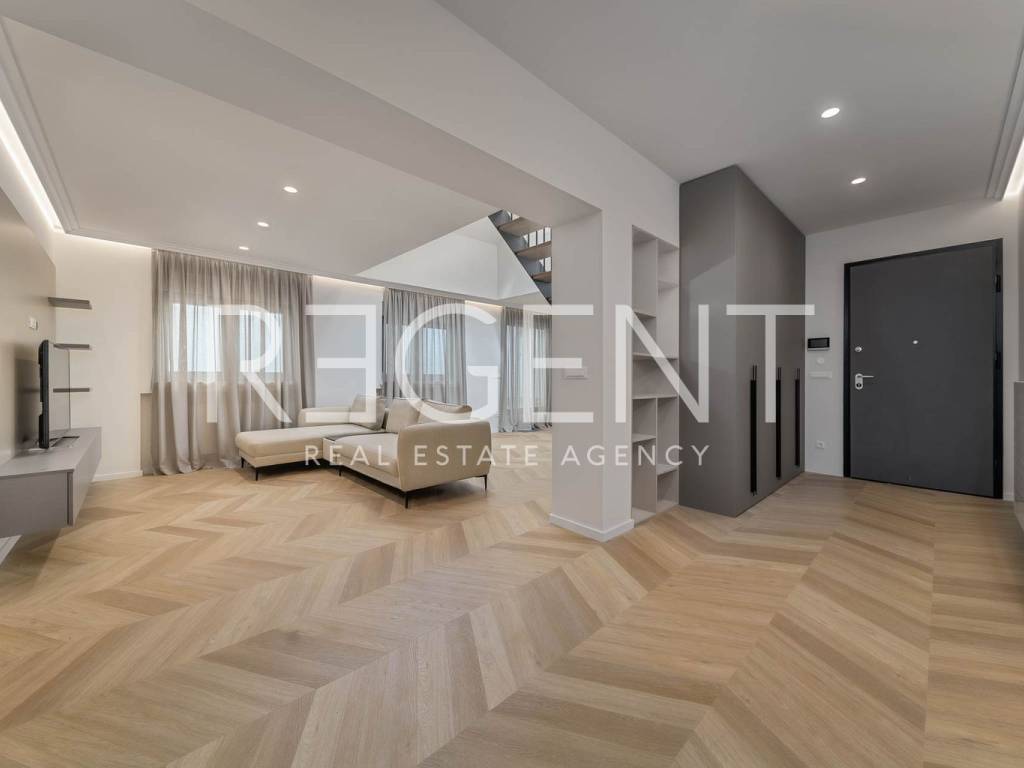 U ponudi imamo ekskluzivan stan, smješten u jednoj od najprestižnijih ulica u Zagrebu, Bogovićevoj. Riječ je o prostranom, dvoetažnom penthouseu ukupne površine 144 m², idealnom za one koji traže spoj elegancije, komfora i života u samom srcu grada. Stan se nalazi na 3. katu uredno održavane stambene zgrade s liftom, a sastoji se od dvije etaže koje su funkcionalno povezane i savršeno raspoređene. Raspored i sadržaj stana: Na donjoj etaži nalazi se: • prostran dnevni boravak s kuhinjom i blagovaonicom, koncipiran u open space stilu • dvije udobne spavaće sobe • dvije moderno uređene kupaonice • zasebna garderoba i praktično spremište Gornja etaža nudi dodatnu privatnost i fleksibilnost s: • dodatnom prostorijom koja se može koristiti kao treća spavaća soba, radna soba ili lounge zona Oprema i karakteristike: • četiri klimatizacijske jedinice – za ugodnu temperaturu tijekom cijele godine • grijanje putem plinskog bojlera • kuhinja je potpuno opremljena svim potrebnim aparatima Dodatne pogodnosti: • terasa kao savršeno mjesto za opuštanje ili druženje • spremište unutar stana pruža dodatni prostor za odlaganje • mirna atmosfera unatoč centralnoj lokaciji Smješten u pješačkoj zoni, samo nekoliko koraka od Trga bana Jelačića, ovaj stan omogućuje potpuni gradski život – vrhunski restorani, kavane, trgovine, kulturne ustanove i javni prijevoz sve su nadohvat ruke. Iako u centru zbivanja, stan pruža privatnost i mir zahvaljujući pametno projektiranom rasporedu i dvostranoj orijentaciji. Za više informacija i razgledavanje, slobodno nas kontaktirajte.