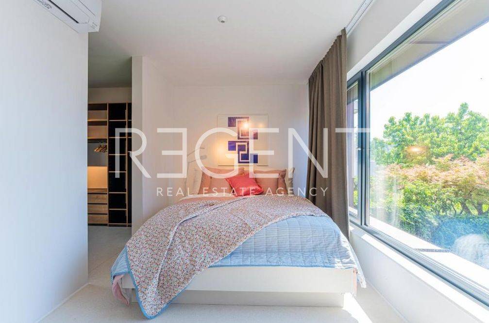 U mirnoj ulici podno Sljemena, na Šestinama, nalazi se potpuno novo adaptirana i namještena obiteljska vila s bazenom, smještena na zemljištu površine 1.530 m². Nekretnina je idealna za dugoročni najam, uz visoku razinu privatnosti i ugodan boravak u zelenom okruženju. Vila se prostire na dvije etaže ukupne površine 400 m². Prizemlje se sastoji od ulaznog hodnika, gostinjske sobe s kupaonicom, prostranog dnevnog boravka povezanog s kuhinjom i blagovaonicom, izlaza na terasu s bazenom i vrtom, vešeraja te sobe za domaćicu sa zasebnim ulazom. Na katu se nalazi master spavaći dio s garderobom, kupaonicom i izlazom na terasu, kao i veliki dječji spavaći apartman koji se po potrebi može podijeliti u dvije spavaće sobe s kupaonicom. Velike staklene stijene osiguravaju obilje prirodnog svjetla i pogled na zelenilo i bazen. Vila je opremljena suvremenim materijalima, terazzo podnim oblogama te ima pripremu za ugradnju solarnih panela. Nekretnina se iznajmljuje potpuno namještena. Lokacija je mirna i diskretna, a istovremeno u blizini svih važnih sadržaja potrebnih za svakodnevni život, uključujući škole, vrtiće, trgovine i dobru prometnu povezanost s ostatkom grada. Za dodatne informacije ili dogovor oko razgledavanja, slobodno nas kontaktirajte.