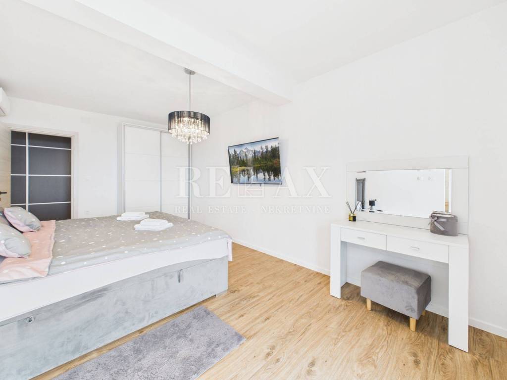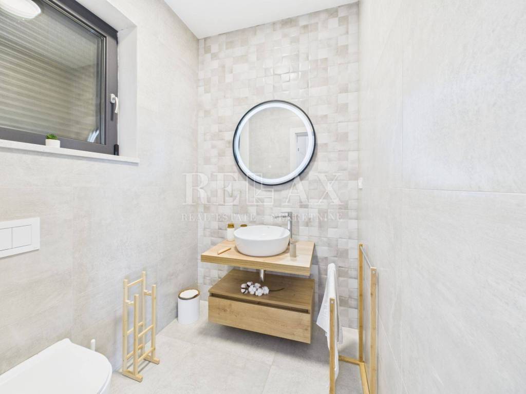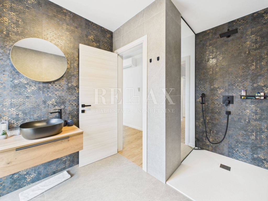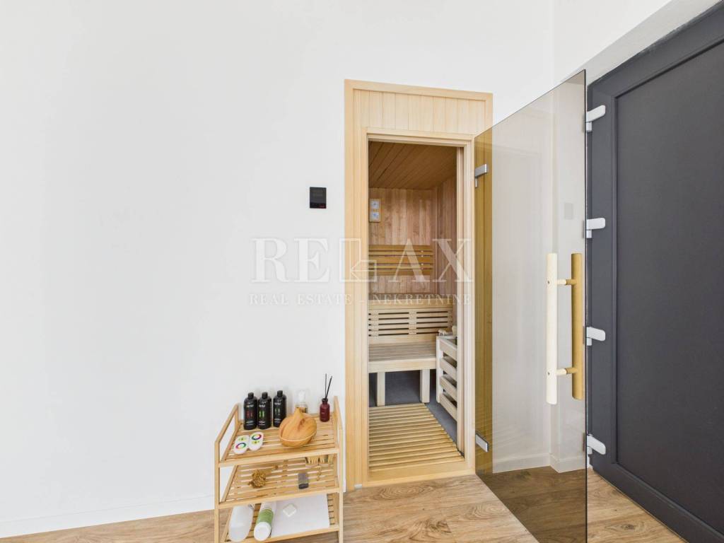 Vila je u potpunosti klimatizirana, dok je podno grijanje postavljeno u kupaonicama, što jamči optimalnu temperaturu tijekom svih godišnjih doba. Na vanjskom dijelu okućnice dominira grijani bazen sa sunčalištem, jacuzzi te natkrivena terasa s ljetnom kuhinjom – idealno za opuštanje i druženje. Posebna prednost su solarni paneli postavljeni na nadstrešnici te električna punionica za vozila, što znatno pridonosi energetskoj učinkovitosti i smanjenju troškova održavanja.