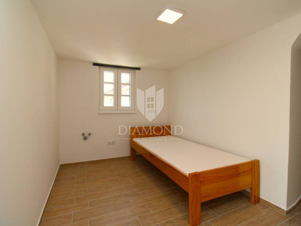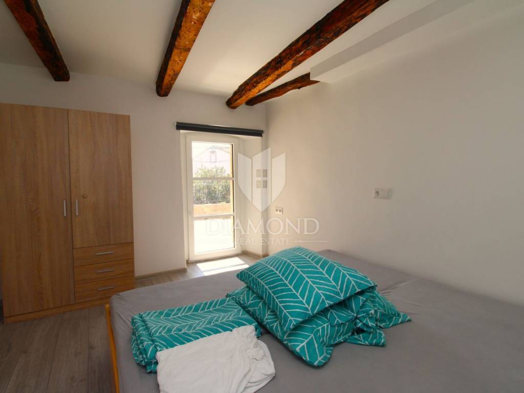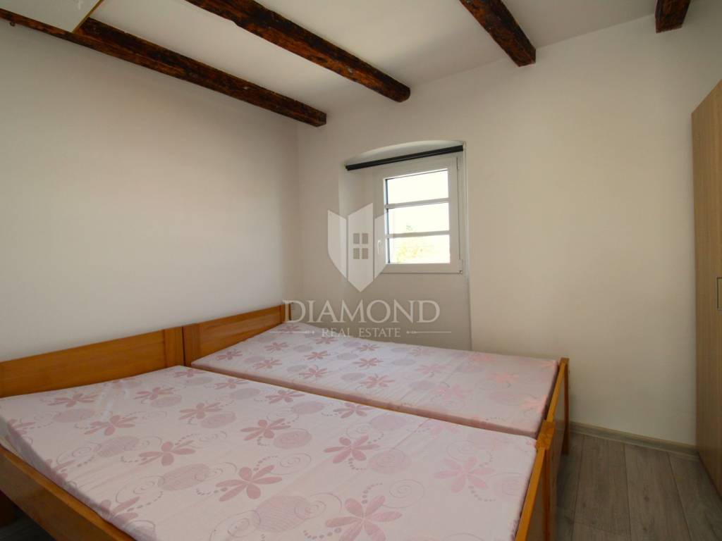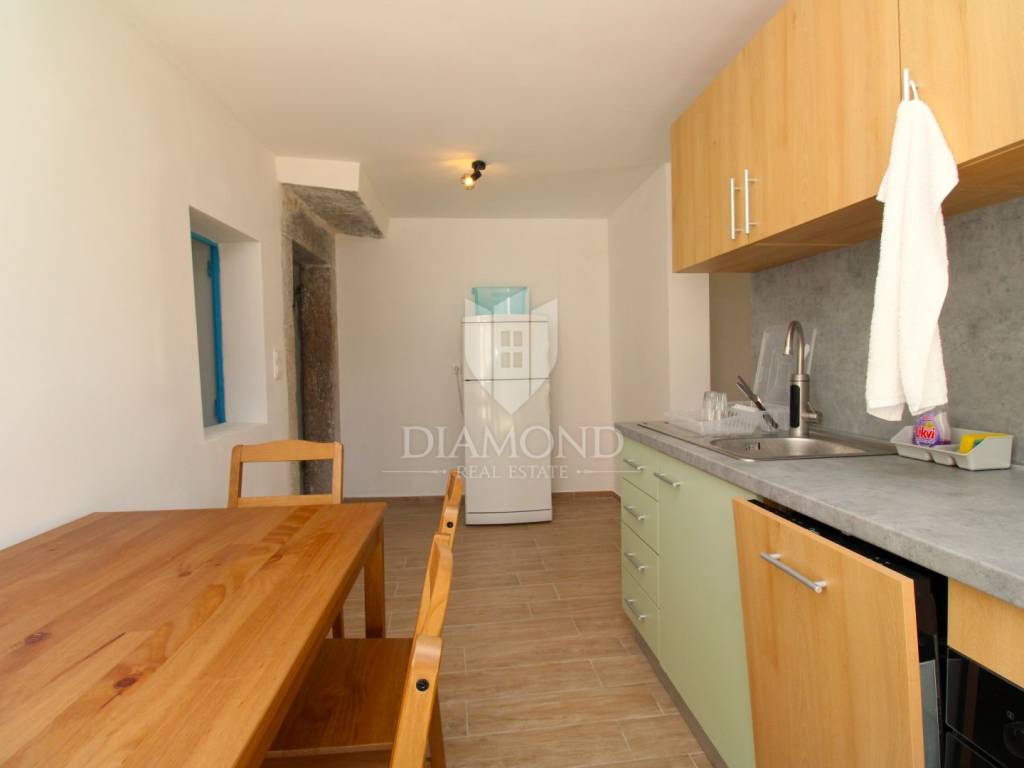 U mirnom i zelenilom okruženom dijelu otoka Krka, u naselju Milohnići, nalazi se ova lijepa kuća u nizu površine 200 m², podijeljena u dvije stambene jedinice. Kuća je kompletno renovirana 2023. godine i spremna za useljenje bez dodatnih ulaganja.