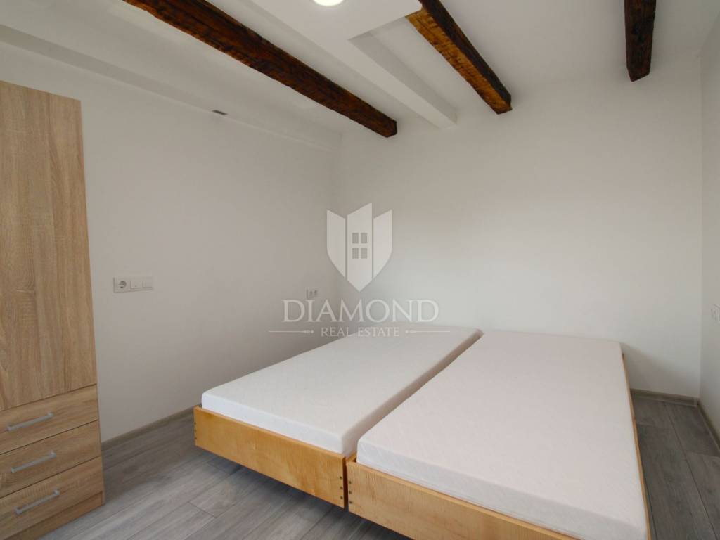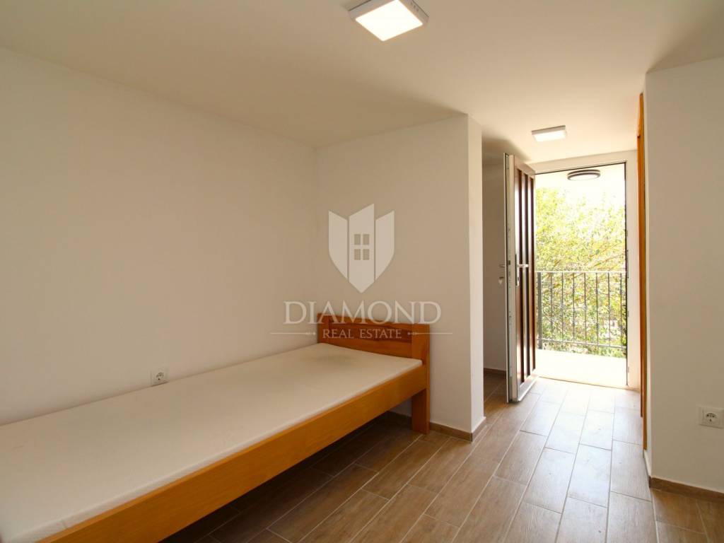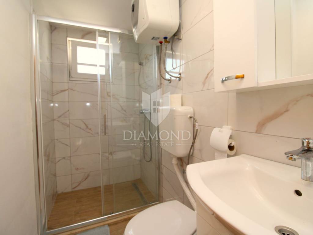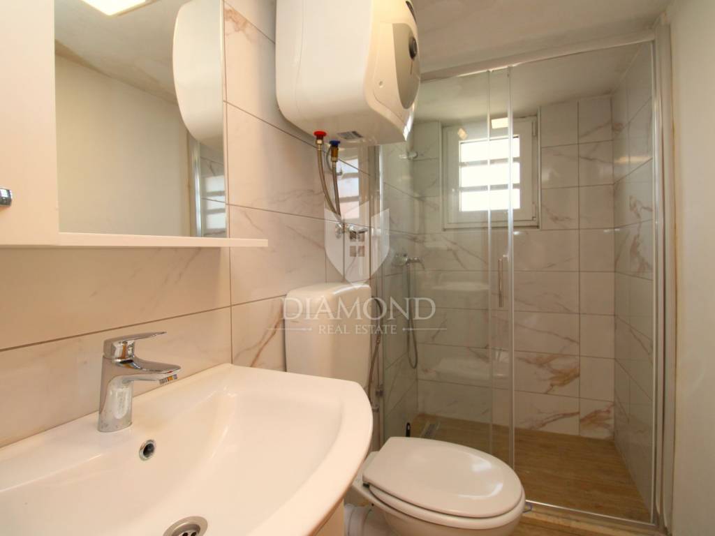 Donja jedinica je nešto manja, ali funkcionalno raspoređena te uključuje dnevni boravak, kuhinju, jednu spavaću sobu i kupaonicu.
