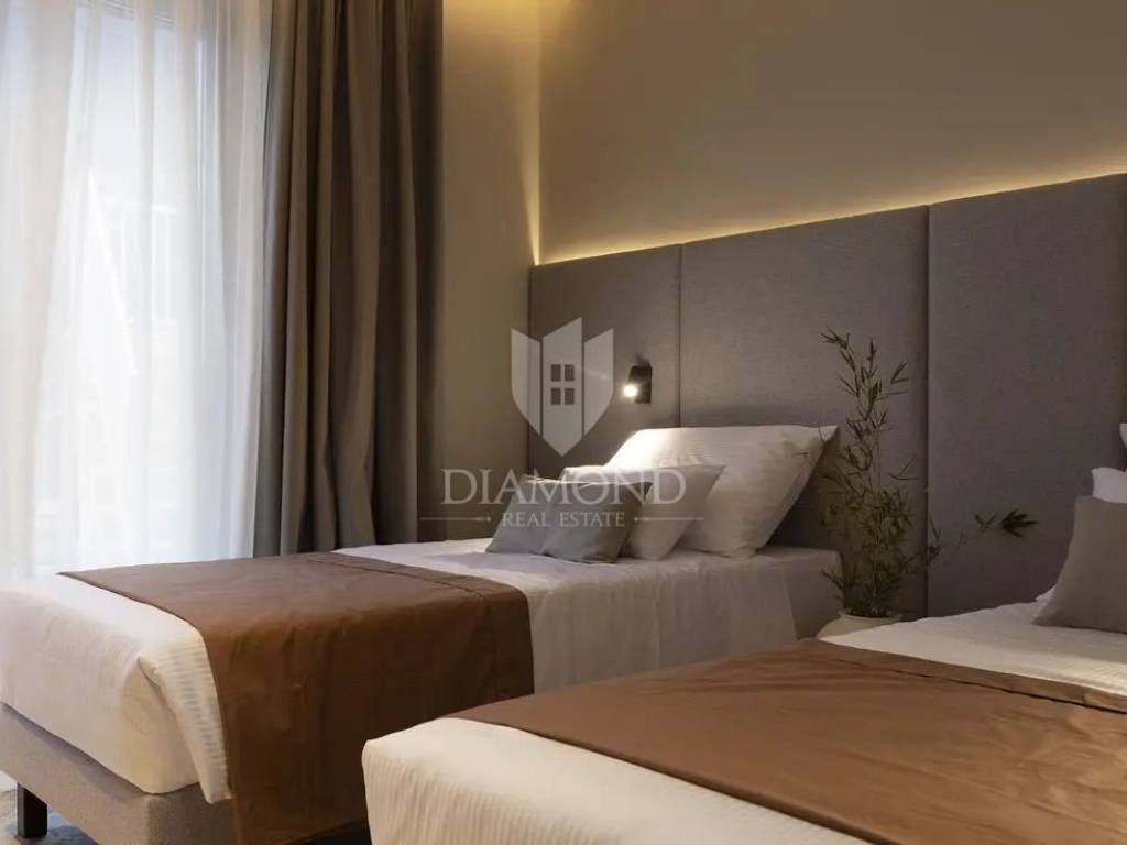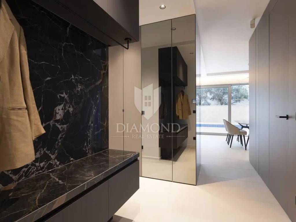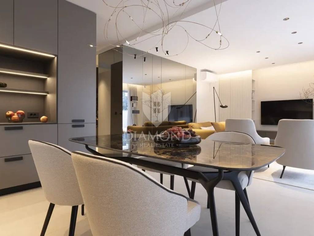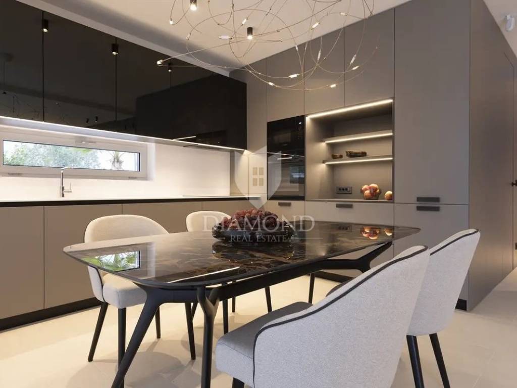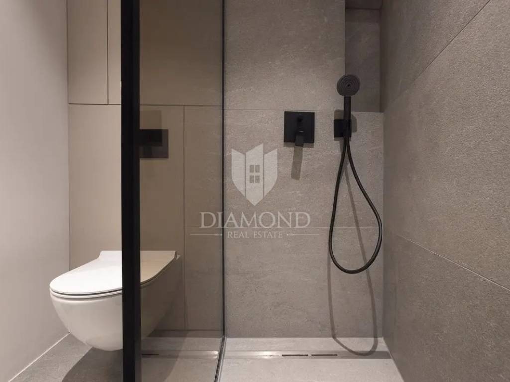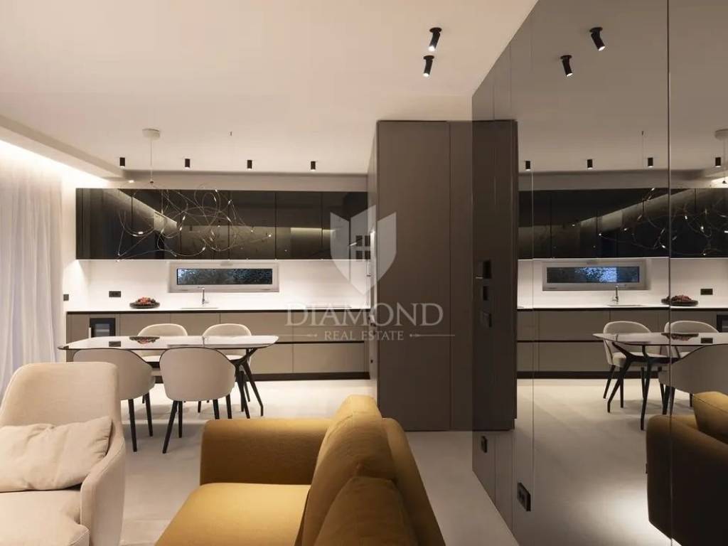 U uređenju su korišteni vrhunski materijali i moderne tehnologije, a stan je opremljen podnim grijanjem s dizalicom topline, klima uređajima u svakoj prostoriji, električnim roletama i videonadzorom. Svi detalji izvedeni su s naglaskom na kvalitetu, estetiku i funkcionalnost.