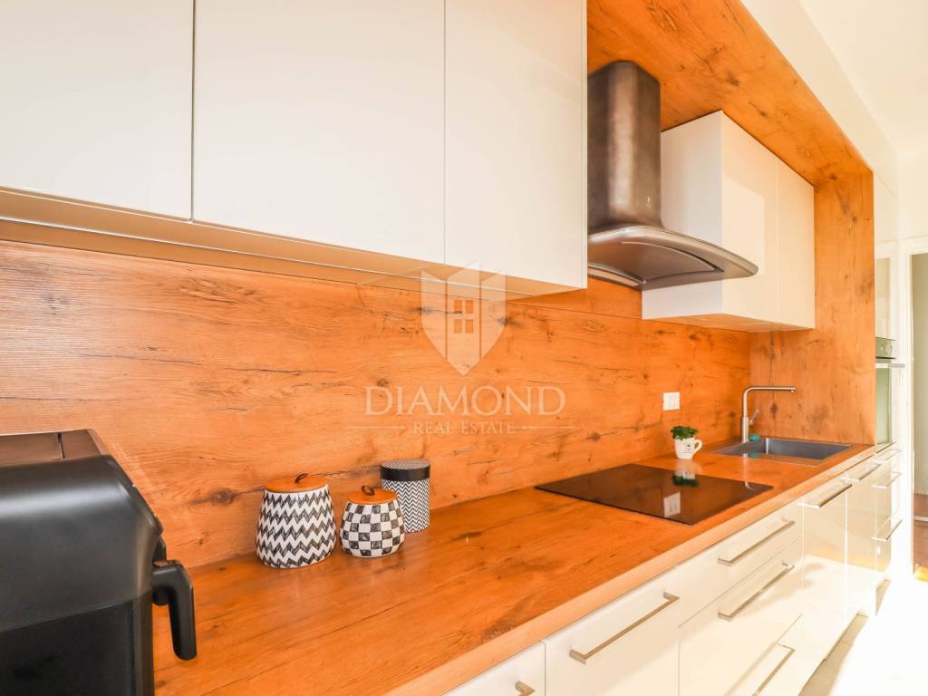 Stan je kompletno renoviran 2020. godine s naglaskom na kvalitetu izvedbe i moderan dizajn. Uređen je kvalitetnim materijalima i opremom, uključujući vrhunske kućanske uređaje, pažljivo odabranu keramiku, modernu rasvjetu te elegantno i funkcionalno rađen namještaj. Zgrada je 2024. godine energetski obnovljena novom fasadom, što dodatno osigurava komfor i bolju izolaciju.