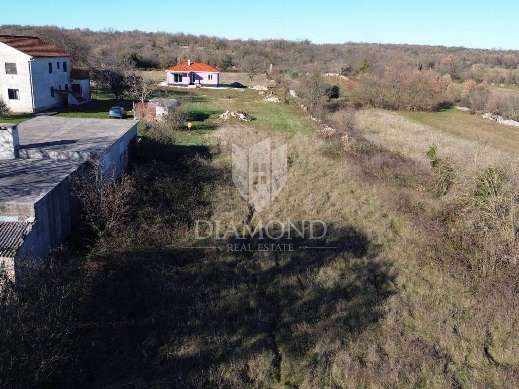 Zemljište je pravokutnog oblika od gotovo 1400 m2. Ima svoj pristup sa lokalne prometnice a sva potrebna infrastruktura kao što su voda i struja se nalaze u neposrednoj blizini. Zemljište je okruženo maslinicima i zelenilom te pruža otvoren pogled na prirodu. Idealno za gradnju kuće a čak se može i podijeliti i napraviti 2 kuće na super zemljištu.