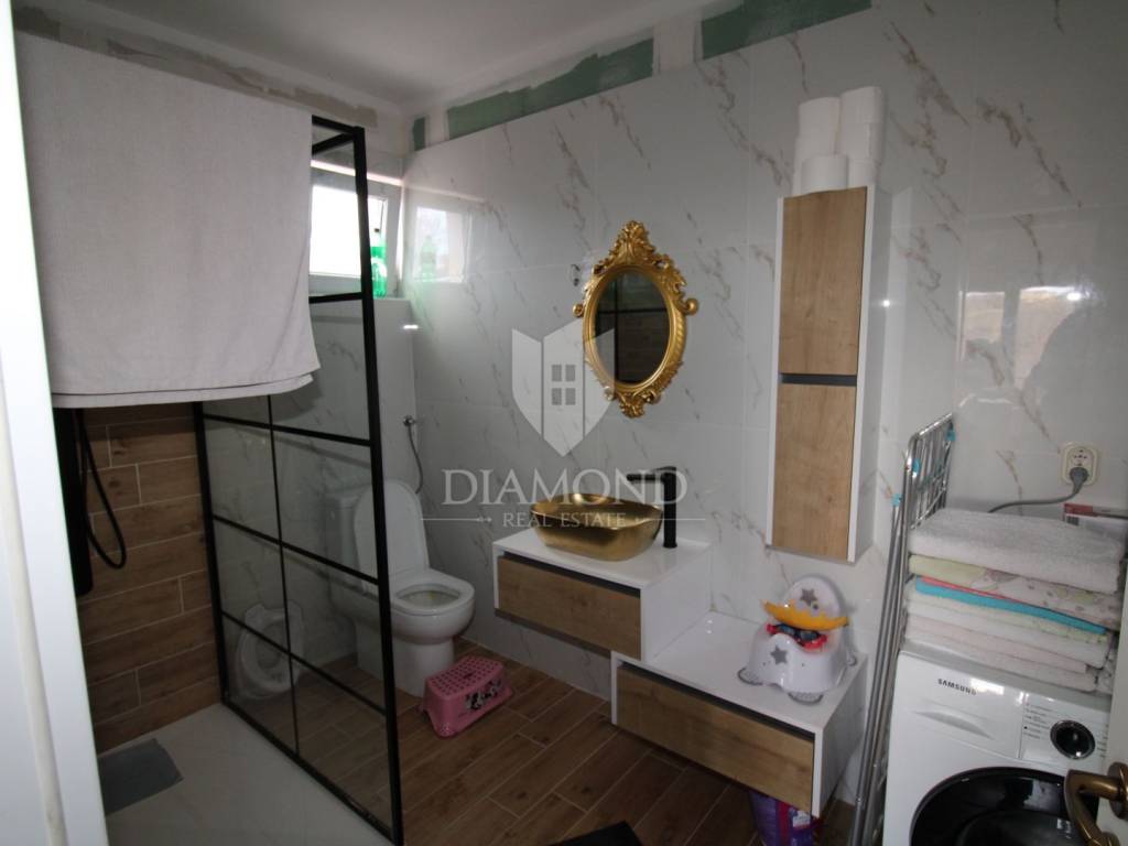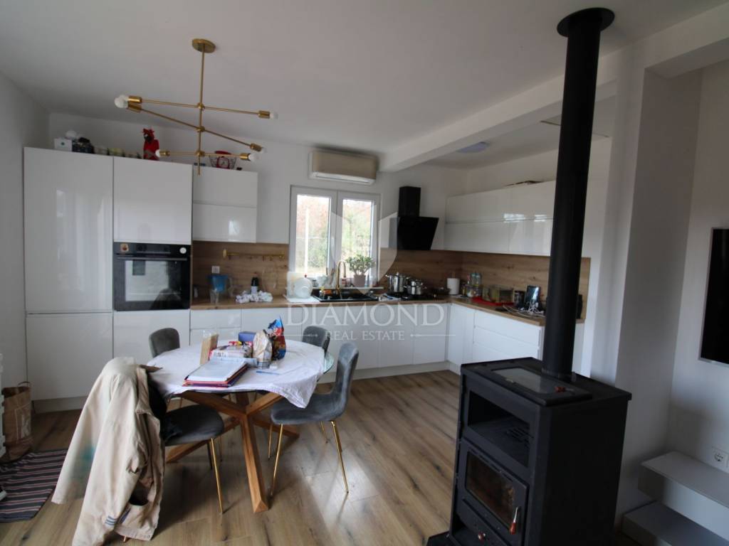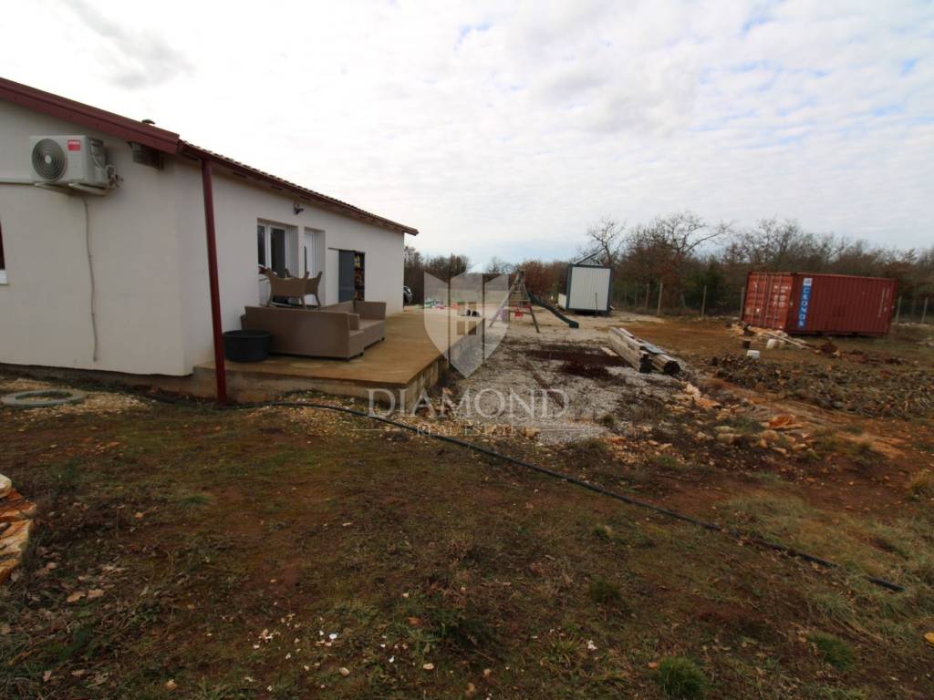 Kuća je prizemnica a koncipirana je tako da ima 3 spavaće sobe, kupaonicu i otvoreni prostor u kojem se nalaze kuhinja sa blagovaonicom i dnevni boravak. Kuća je odlična te i vlasnici trenutno žive na njoj. Okućnica ima 10 300 kvadrata i pruža razne mogućnosti što se može raditi na njoj. Postoji i projekt sa građevinskom dozvolom za urbanu vilu tako da se odmah može pristupiti gradnji i početi se baviti turizmom. Naravno tu su posađene i razne voćke a sve okružuje lagana šuma tako da je intima zagarantirana.