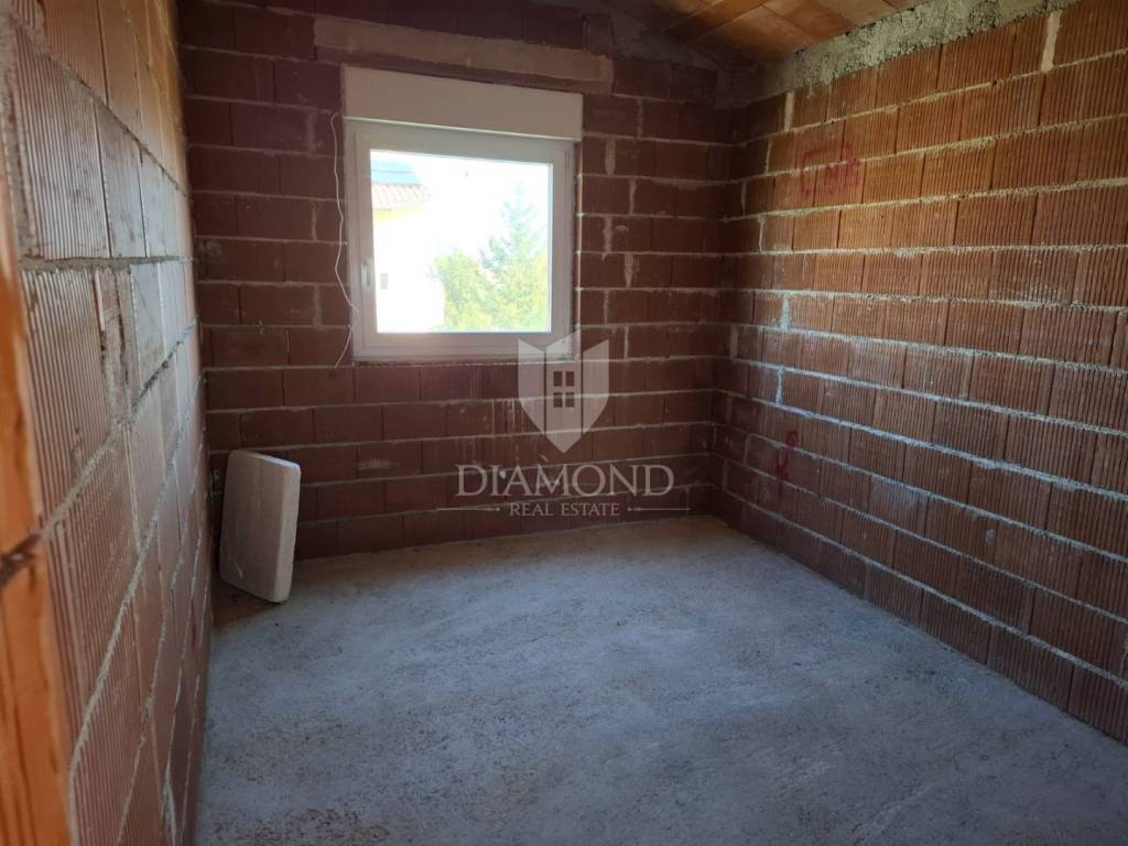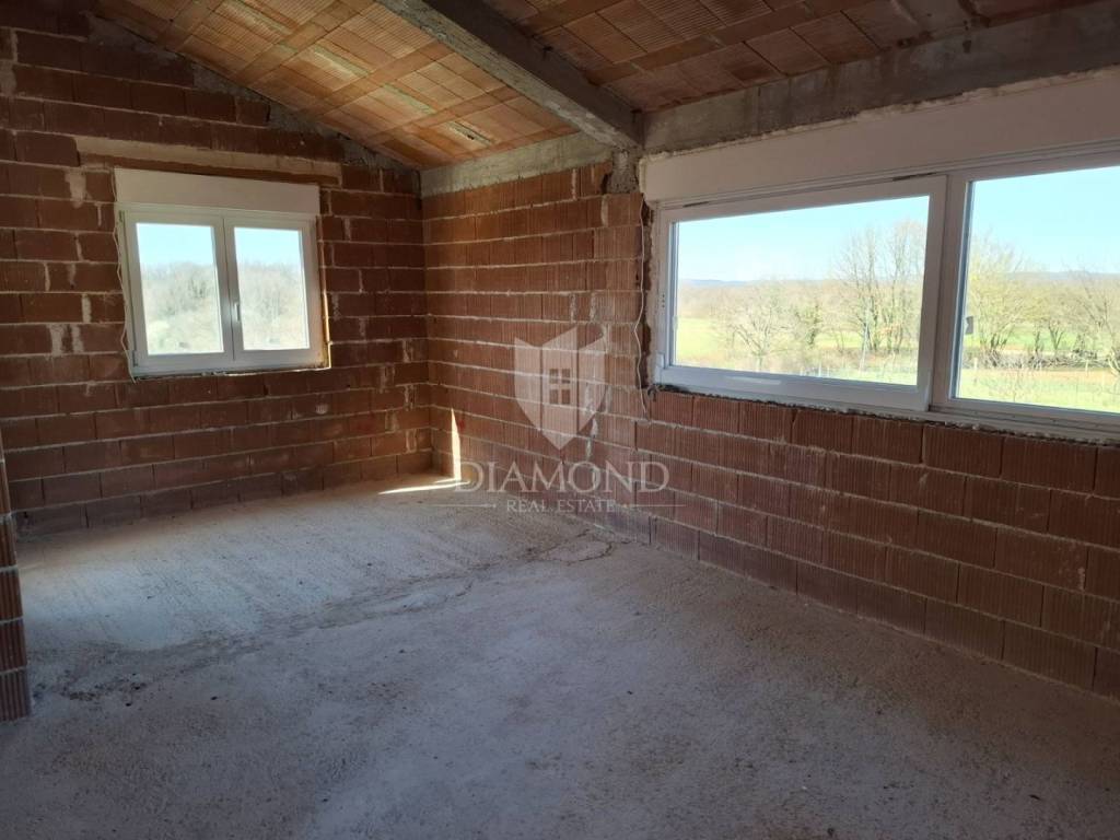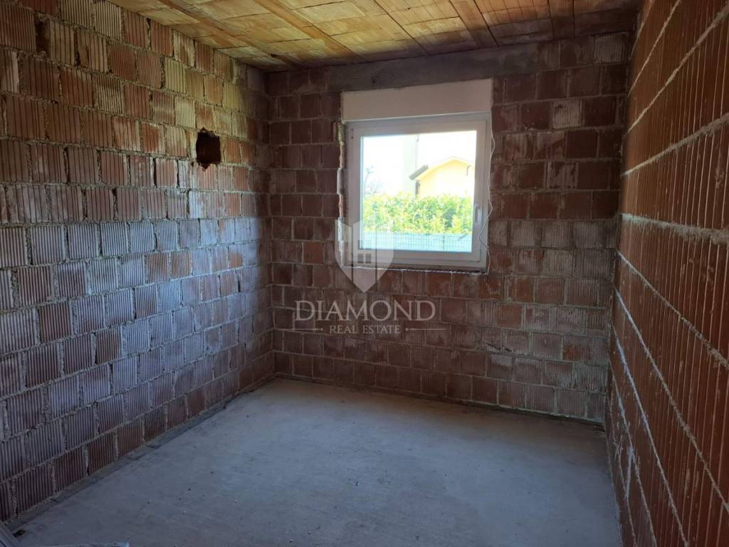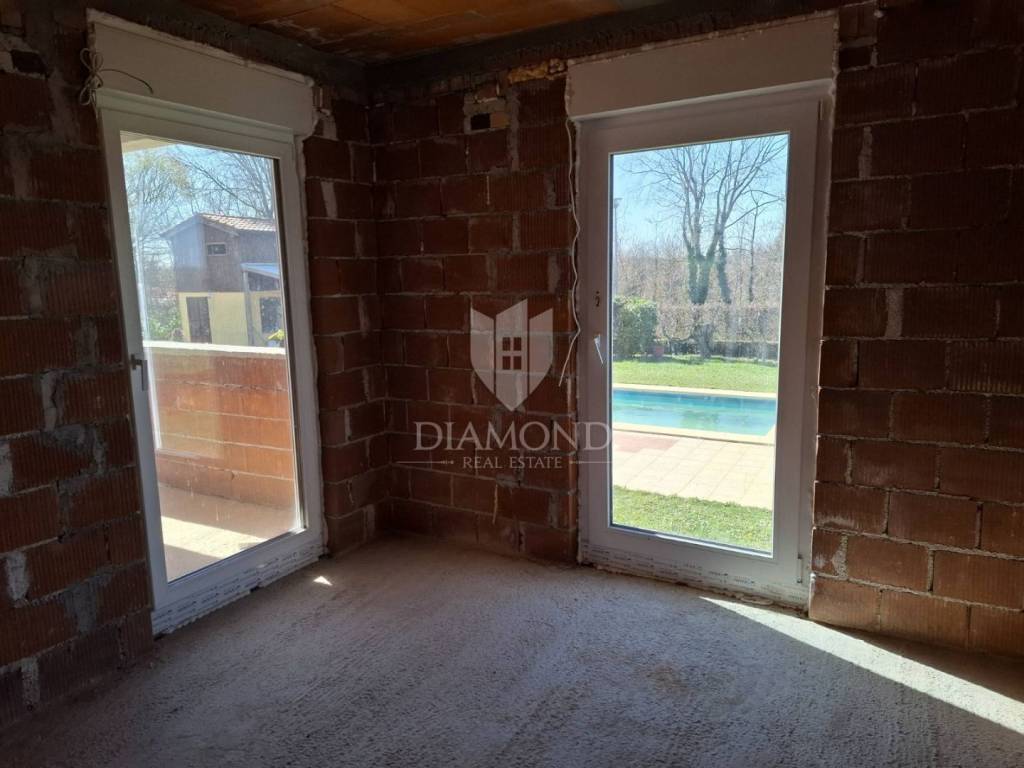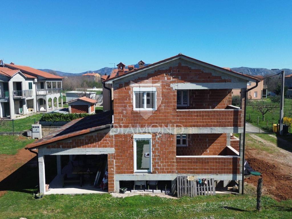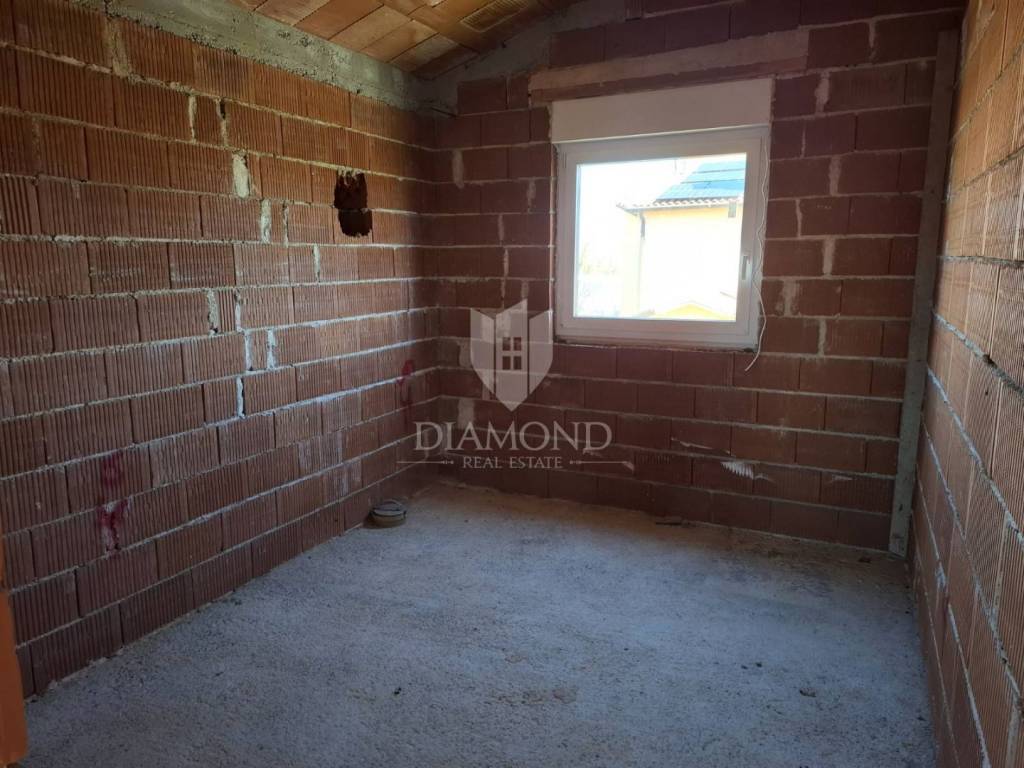 Kuća se nalazi svega 5 kilometara od centra Labina i smjestila se na lijepoj ravnoj parceli od 949 metara kvadratnih. Ispred kuće je već sagrađen funkcionalan bazen sa slatkom vodom. Sama kuća je koncipirana tako da je podijeljena na dva stambena prostora svaki sa svojim ulazom pa je izrazito pogodna ili za dvije obitelji ili najam. Svaki stan ima 66 metara kvadratnih, dvije spavaće sobe, kupaonicu, te otvoreni prostor namijenjen za dnevni boravak, kuhinju i blagovaonicu iz koje se izlazi na natkrivenu terasu. Kuća je ozidana najnovijim materijalima te je postavljen krov i pvc stolarija na sve prozore i terase.