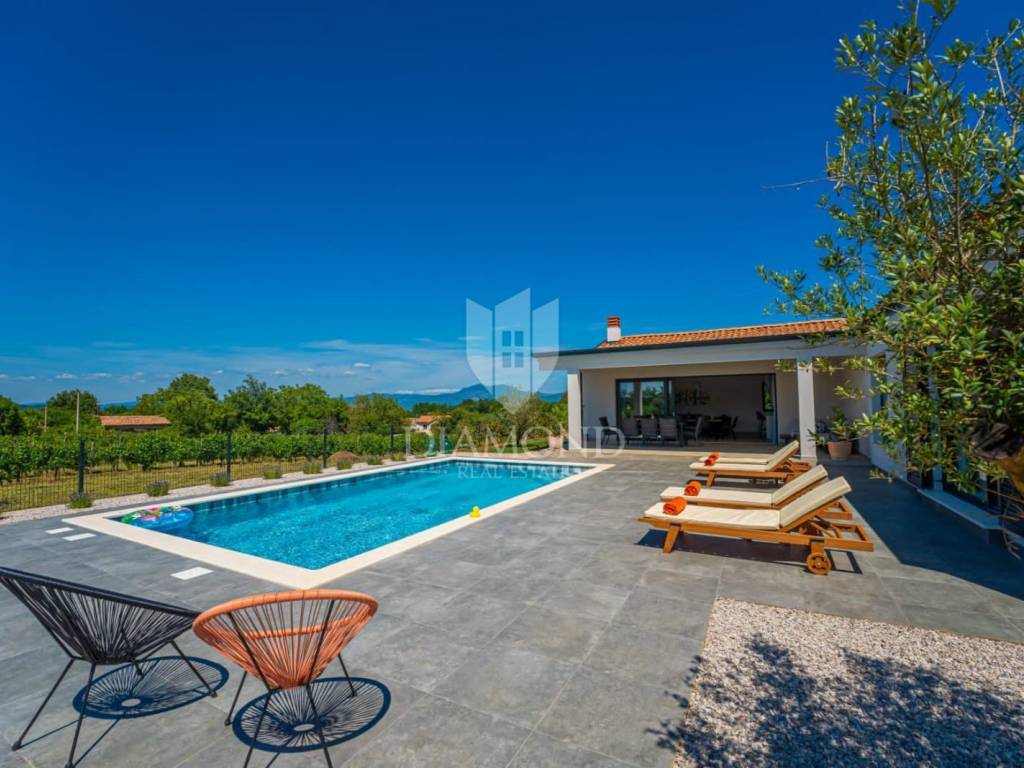 Prodajemo odličnu kuću sa bazenom svega 10 minuta vožnje od Labina. Kuća se smjestila na lijepo uređenoj parceli od 850 kvadrata. Sama kuća je novogradnja te su upotrebljavani najbolji materijali što se vidi odmah kod prvog dolaska u kuću. Veličine 150 kvadrata kuća pruža jako puno prostora i komocije. Čine ju 3 spavaće sobe svaka sa svojom kupaonicom. Iz glavne spavaonice kroz kliznu staklenu stijenu se izlazi direktno na bazen.