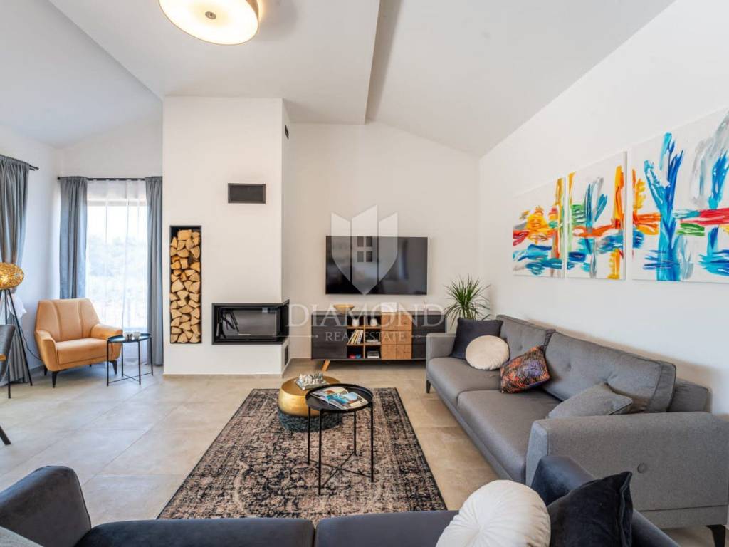 Dnevni dio kuće je u otvorenom prostoru gdje su se smjestile kuhinja, blagovaonica i dnevni boravak. Iz tog prostora se opet kroz veliku staklenu stijenu izlazi na bazen koji je grijan pa se može kupati i u hladnijem periodu godine. Cijela kuća ima podno grijanje i opremljena je klima uređajima kao i kaminom u dnevnom boravku koji daje poseban štih.